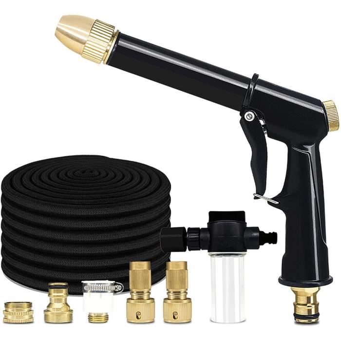 Pistolet d'arrosage durable 1., Se connecte facilement au tuyau standard de 1,9 cm, s'adapte à tous les tuyaux d'arrosage standard. Solide et durable, résistant aux rayures et au gel., 2., Sortie d'eau en métal antirouille - Corps de pistolet en alliage de zinc moulé monobloc - Processus de tréfilage en acier inoxydable - Ne rouille pas., 3., Accessoires d'interface filetée en cuivre super fin, meilleure étanchéité, pour éviter les fuites., 4., Corps ultra léger, résistant à la pression, étanche à l'eau, raccords résistants à l'usure., 5., Buse rotative à 360°, réglage libre de la voie d'eau, 4 types de mode d'eau. Il peut être arrosé toute la journée sans les mains fatiguées et il n'est pas froid en hiver. Si vous n'êtes pas satisfait de nos buses, vous pouvez toujours nous contacter buse de pulvérisation de tuyau d'arrosage Dimensions de l'article : 14 x 8,9 x 3,6 cm (L x l x H) Matériau de l'interface : cuivre Matériau de la buse : laiton. 4 modes de débit d'eau en tournant la tête de la buse. Pistolet de Pulvérisation Pour Tuyau D'arrosage, Buse de Tuyau D'arrosage en Laiton, Robuste et... Idéal pour nettoyer votre voiture, trottoirs, cour, gouttières, terrasses, maison et n'importe où avec différents motifs. Réglez d'abord la tête de pulvérisation, puis appuyez sur la clé avant, vous obtiendrez ce que vous aimez. La buse de tuyau est très résistante, fabriquée en alliage de zinc et déclencheur. Qualité garantie : nous sommes fiers de nos produits. Navaris Pistolet d'arrosage Jardin - Arroseur Haute Pression avec Tuyau D'arrosage Voiture Pulvérisateur De Buse De Tuyau D'arrosage Robuste, Buse De Pulvérisation 100% En Métal, Buse De Bus De Tuyau D'arrosage Design monobloc et plusieurs joints toriques internes en caoutchouc offrent un joint étanche durable pour éliminer les fuites, un must have pour la maison