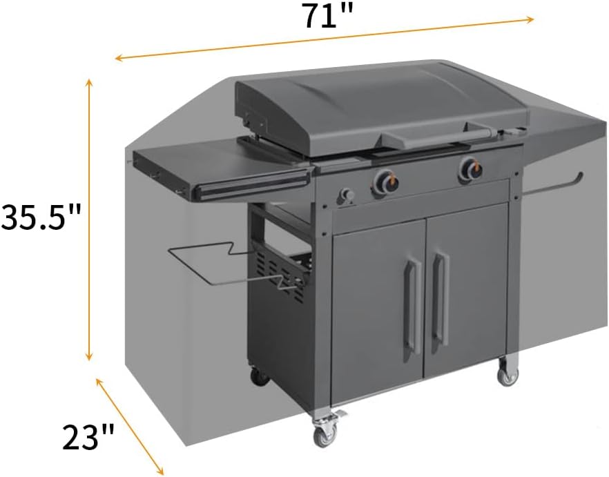 Noir Housse Barbecue, Bache de Protection Résistante de 210D Oxford BBQ iCOVER Housse pour barbecue Construit avec un tissu résistant aux UV avec revêtement extérieur en vinyle, facile à résister à la lumière du soleil et garde la housse neuve et propre. Convient pour toute l'année. ICOVER – Housse De Cuisson De 91,4 Cm Pour Barbecue Coins améliorés : cette housse de barbecue de 91,4 cm est livrée avec 8 coins améliorés, ce qui la rend beaucoup plus durable et ne se déchire pas facilement au niveau des « coudes » tranchants. Ne vous inquiétez plus que votre housse de barbecue s'envole en cas de vent fort. Les poignées sur les deux côtés aident à mettre et à enlever facilement. Poteau de support de 20,3 cm gratuit : cette housse de plaque de cuisson dispose d'un poteau de soutien supplémentaire de 20,3 cm pour soutenir la housse au milieu, pour empêcher la housse de toucher la plaque de cuisson huileuse, également empêcher l'accumulation d'eau et les poches qui recueillent les débris. Le bord à double reliure aide à résister aux fuites d'eau. Conçue spécifiquement pour la plaque chauffante Blackstone 36 et le Camp Chef 600, cette housse offre un ajustement parfait, empêchant l'accumulation de... Dimensions pour plaque de cuisson Blackstone de 91,4 cm : 66,12,7 cm (largeur) x 52,7 cm (profondeur) x 88,9 cm (hauteur), cette housse de plaque de cuisson convient pour les grils à gaz Blackstone de 91,4 cm (modèle 1554/1825/1560/1565/1836, pour Blackstone 1836, 819 Griffe Combo, pour plancha Blackstone 1868 de 91,4 cm avec friteuse à air, pour Camp Chef (tels que FTG600) et la plupart des grilles à 4 brûleurs.