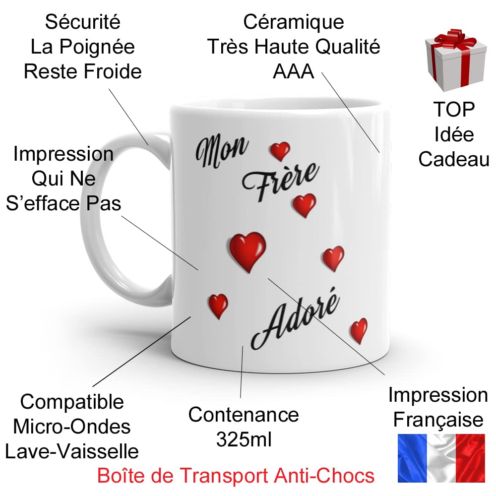 Pour cela, nous avons crée des collections avec différentes thématiques, vous retrouverez donc parmi nos modèles des mugs humoristiques, des mugs pour les anniversaire, des mugs avec les signes du zodiaques, des mugs avec des licornes pour les enfants (ou même les grands), des mugs avec des citations drôles ou plus sérieuses, des mugs pour célébrer une retraite bien méritée, des mugs pour annoncer la super nouvelle d'une naissance, des mugs dédiés à l'amour (vaste sujet) sans oublier les mugs à personnaliser directement en ligne. Diamètre du mug : 8cm Nous avons souhaité proposer des mugs pour toutes et tous, des plus jeunes au moins jeunes. La chaleur et la pression exercées sur le mug feront transférer l'encre du papier à l'intérieur de la céramique. Un mug destiné pour dire je t'aime à son frère ou son demi-frère. Mug tasse cadeau avec de jolis coeurs rouges et le joli message je t'aime de la marque Française Kalféa. Ce mug est réalisé dans une céramique de très haute qualité AAA. Mug amour frangin réalisé et imprimé en France par sublimation. L'impression de haute qualité ne s'efface pas dans le temps. Ce mug est... Ce visuel sera imprimé à l'envers pour que le transfert d'encre se fasse sur le mug grâce à la chaleur et la pression au moment de la cuisson. Emballage du mug La septième étape consiste à protéger le mug pour son transport. ❤️ TOUJOURS SOUS LA MAIN : Ce mug amour je t'aime mon frère avec coeurs rouges servira aussi bien pour un bon café comme un bon chocolat avec des céréales, il servira aussi de grog ou pour boire une bonne soupe ou un thé ou une camomille Votre satisfaction restant une priorité ❤️ TRANSPORT ET LIVRAISON : Ce mug vous sera expédié directement par Amazon pour une livraison rapide, il sera dans une boîte anti-chocs La Poignée Reste Froide La sécurité est importante pour les adultes comme pour les enfants. Poids net du mug : 338grs ❤️ SECURITE : La poignée du mug restera froide, il est compatible micro-ondes et lave-vaisselle Cuisson du mug La quatrième étape consiste à cuir le mug. Contrairement à l'habitude, nous ne faisons pas une cuisson mais deux, ce qui permettra que l'impression ne s'efface pas dans le temps. Comme vous pouvez le constater, nous mettons toutes les chances de notre côté pour que votre mug soit préservé. Il y aura aussi des mugs pour sa femme ou son mari, sa chérie ou son chéri, bref il y en aura pour tout le monde ., ., ., ., ., ., Voici quelques informations concernant les mugs de la marque Française Kalféa Hauteur du mug : 9., 50cm Nous avons pensé utile de vous expliquer la réalisation de l'impression des mugs ci-dessous. Sur cette photo, le mug est emballé dans son carton anti-chocs mais pour éviter les surprises, il sera inséré dans un autre carton avec un calage supplémentaire. Noel Kalféa Mug Frère Adoré Je T'aime Tasse Demi-frère Amour Haute Qualité Avec Coeurs Idée Cadeau Originale Famille Frangin Anniversaire Noel Fete Réalisé Cadeau Frere Cette technique consiste à faire entrer l'encre à l'intérieur de la céramique. Le papier est maintenu avec un scotch thermique pour ne pas fondre à la cuisson. Mug personnalisé – Mon frère – Sophie Janière – Terres & Beauté Comment nous concevons vos mugs étape 5 à 8 Refroidissement du mug La cinquième étape consiste à sortir le mug de la presse et retirer le papier sans se brûler. Prêt à partir La huitième et dernière étape consiste à envoyer le mug. La collection de mugs de la marque Kalféa compte plusieurs centaines de modèles. Le grand avantage d'un mug cadeau, c'est de ne plus se poser la question, quoi offrir ? Le mug est adapté à n'importe quel âge pour n'importe quel sujet, il est aussi le cadeau facile sans même avoir de raison pour l'offrir. Offrez un concentré de tendresse à votre frère avec ce mug plein de significations. Arborant l'inscription émouvante Avoir un frère, c'est avoir un meilleur ami pour la vie , cette tasse est le cadeau parfait pour lui rappeler la complicité unique qui vous unit. Pratique et chargé d'amour, ce mug cadeau accompagnera ses cafés ou thés tout en réchauffant son cœur. Idéal... Emballage Anti Chocs Afin que votre mug vous arrive dans un état irréprochable, celui-ci sera individuellement emballé dans un emballage sur mesure et anti-chocs. Compatible Lave-Vaisselle Nous utilisons la technique de marquage par sublimation. L'impression du mug n'est pas si simple, il y a beaucoup d'étapes qui prennent pas mal de temps. Placement du Visuel La troisième étape consiste à enrouler le mug avec le papier imprimé. Il y a toujours un cadeau à faire à un membre de la famille, à un collègue, à des amis, à ses enfants ou parents sans oublier les grands parents. Compatible Micro-Ondes La qualité de la céramique utilisée pour nos mugs (AAA) offre une très grande résistance.