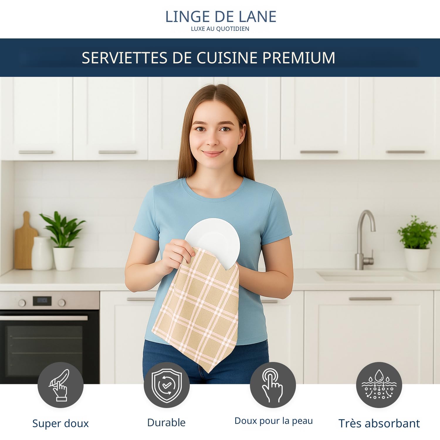 ♥ Cadeau idéal – Chaque torchon est imprimé avec des motifs élégants, qui recevront ce cadeau sera très heureux. Vous ne serez pas déçu. Doux, durable, super absorbant. Ces serviettes ont la taille parfaite pour être utilisées comme torchons de vaisselle, serviettes de bar, torchons de vaisselle ou tout simplement comme décoration pour votre belle maison. Ces serviettes amusantes sont parfaites comme cadeau pour vos proches à Noël, la Saint-Valentin, Pâques, la fête des mères, la Saint Patrick, le carnaval, une pendaison de crémaillère. ▪ Excellent pour enlever la poussière, la saleté, l'huile, les taches et idéal pour le nettoyage de la cuisine, le dépoussiérage, le verre. Torchons de cuisine en microfibre efficaces, très absorbants pour un résultat bluffant sur votre vaisselle, mais également sur vos plans de travail, meubles ▪ Contenu : 1 pièce, 4 pièces et 6 pièces au choix. ▪ Convient pour une utilisation dans les casseroles et poêles, assiettes, ustensiles de cuisine, comptoirs, miroirs, verres, meubles, lavabo, lavage de voiture, etc. Motif imprimé sur un seul côté avec bords ourlés. ACCENTHOME Accent Home Lot De 4 Torchons De Cuisine, 100 et garder bien rangés. 100 % microfibres, ne peluche pas · Excellente performance mécanique · Sèche sans laisser de traces et polit · Éclat lumineux sur toutes les surfaces non sensibles... Disponible en 1 pièce, 4 pièces et 6 pièces pour vous. ♥ Utilisations multiples – Les torchons de cuisine sont parfaits pour nettoyer la vaisselle, les tasses, les casseroles, la cuisinière, etc. ▪ Les imprimés colorés et amusants font un ajout classique à votre table à manger. Lot De 4 Torchons De Cuisine En Microfibre Ultra Doux Et Absorbants ▪ Matériau : tissu de type lin/coton, tissu en polyester mélangé.
