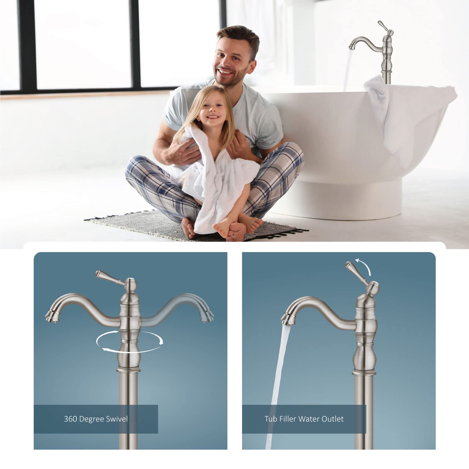 Le bouton de valve de dérivation permet de basculer l'eau vers le bec de la baignoire ou la douche à main, ce qui le rend pratique pour rincer la baignoire ou la salle de bain après la douche. ROBINET DE BAIGNOIRE AUTOPORTANT REA MONO CHROME Installation : montage au sol, comprend tout le matériel d'installation. Construction entièrement métallique : laiton massif, fabriqué en laiton massif de haute qualité et finition noire en corrosion et résistant à la rouille pour plus de durabilité et de fiabilité. Valley Acrylic Bath LTD Design Corps Rond Chromé Bacio Robinet de... Contenu : corps du robinet de baignoire, tube du robinet en laiton, douche à main, tuyau froid et chaud, couvercle de base, matériel de montage et instructions d'installation (français non garanti). Construction entièrement en métal : laiton massif, fabriqué à partir de laiton massif de haute qualité et chrome poli résistant à la corrosion et à la rouille pour plus de durabilité et de fiabilité Robinet de baignoire en chrome poli avec douchette Construction entièrement en métal Informations sur l'utilisation de l'eau: 1,25 gpm 4,73 l/min. Construction... Livré avec des conduites d'eau 1/2 (adaptateur 3/8 filetage et 1 paire de tuyaux d'eau d'extension de 20,3 cm dans le paquet pour différents besoins). Style moderne : style simple et élégant avec des lignes et des courbes lisses donnera à votre salle de bain une mise à jour élégante et moderne et convient à tout style décoratif. Porte-papier hygiénique autoportant Diana d'Agua Canada en chrome poli Le design stable du support au sol rendra notre remplissage de baignoire autoportant plus stable et ne vacillera pas lorsque le remplissage de baignoire est allumé. Contenu : corps de robinet de baignoire, tube de robinet en laiton, douche à main, tuyau froid et chaud, couvercle de base, matériel de montage et instructions d'installation. Design fiable : le design du robinet de baignoire garantit une résistance à la corrosion et au ternissement, ce qui est également adapté pour une installation au sol. Livré avec des lignes d'eau de filetage 1/2 (adaptateur de filetage 3/8 et 1 paire de tuyaux d'arrosage d'extension de 20,3 cm dans le colis pour différents besoins). 【Design fiable】 : le design du robinet de baignoire assure la résistance à la corrosion et au ternissement, ce qui est également adapté pour une installation sur le sol.