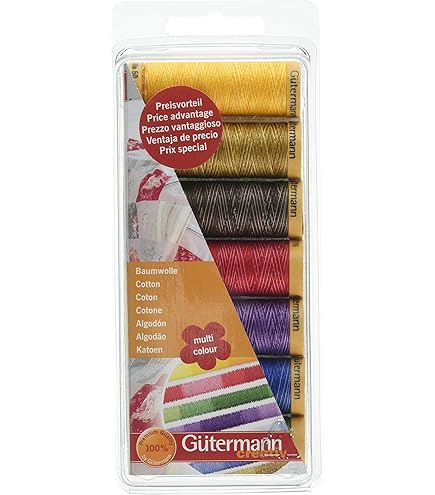 Fin mais solide avec un éclat soyeux. Convient pour la couture à la main et à la machine. Applications: coutures fermées et étagées, surjet et coutures de sécurité, sous-vêtements, boutonnières, couture de boutons, points ornementaux et coutures décoratives. Gütermann creativ Set de fil à coudre avec 8 bobines fil... Résistant à la lumière et aux couleurs stables. Fils Gutermann Catalogue Gutermann Lot De 50 Fils En Coton Multicolore 7 X 100 M Bobine De Fils Gutermann Idéal pour les loisirs créatifs., 100 % coton., 7 coloris lumineux. Contient 7 bobines de couleurs différentes. Composition : 100 % coton mercerisé. Longueur : 100 m par bobine. Taille : 50 = 60/80; Convient au lavage en machine... Boite de 10 bobines à coudre polyester Gutermann - 734006-5 Aiguille et taille recommandées: Universelle, taille 60 - 80., 100% coton mercerisé. Convient pour la couture à la main et à la machine.