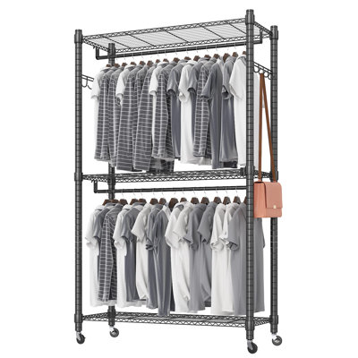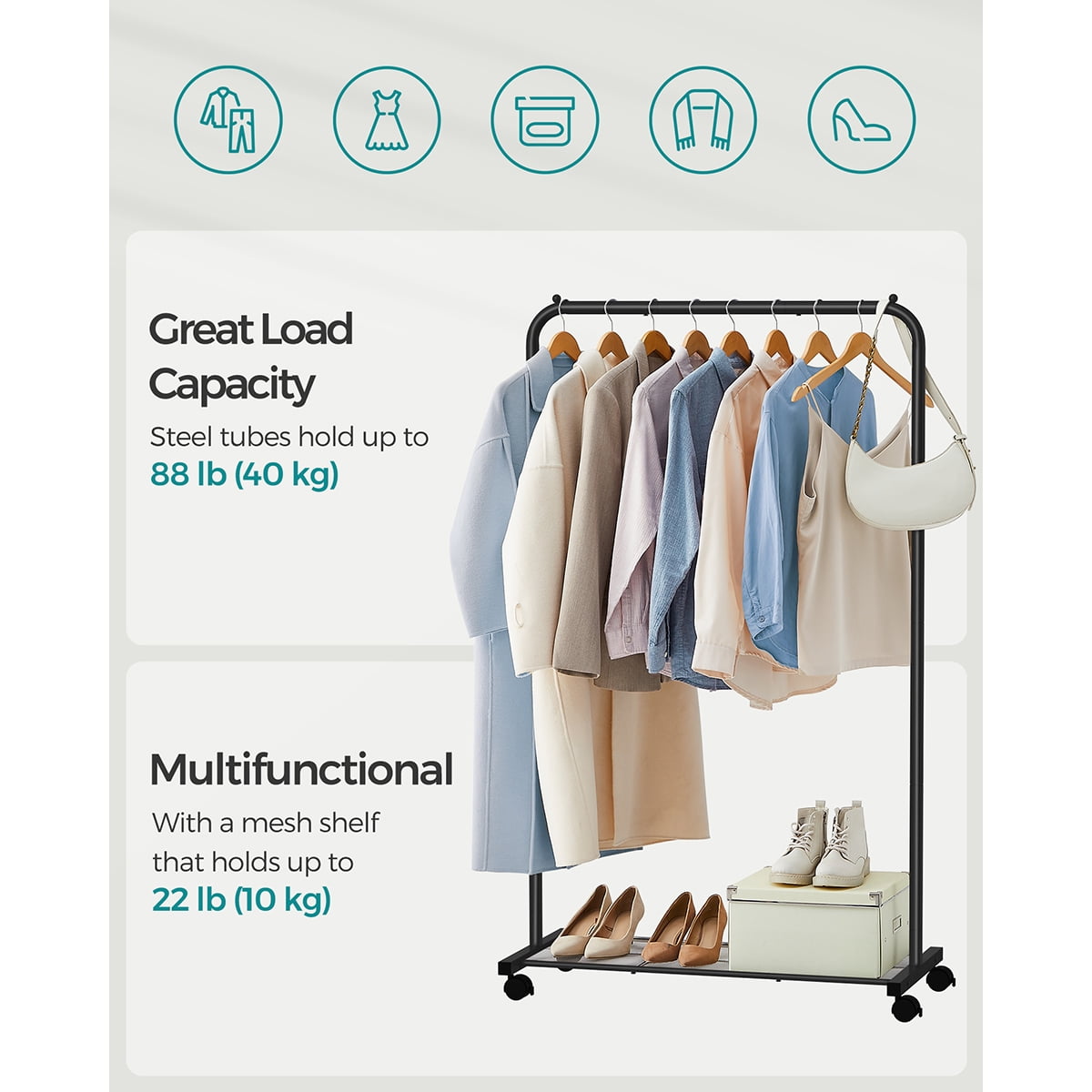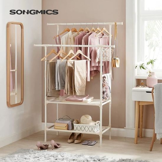« Vous cherchez un espace de suspension supplémentaire pour vos vêtements ? Vous avez un espace limité pour ranger vos vêtements ? Notre portant à vêtements est la solution parfaite pour les petits placards ou les petites pièces. Il est parfait pour une chambre d'amis qui n'a pas de placard ou de la mettre dans votre buanderie, salon pour rendre tout organisé, propre, propre et bien rangé. Dimensions totales : longueur 119,4 cm x hauteur 149,9 cm x largeur 35,1 cm. IZEUK Portant à vêtements à roulettes robuste à 2 combinaisons Description du produit Cette tringle à vêtements robuste avec 8 étagères permet de ranger les vêtements, les chaussures, les bagages, les boîtes, etc. 5 tiges de suspension pour suspendre des vêtements de différentes longueurs. Vous aide à trouver facilement vos vêtements et à les garder sans plis. Ce portant à vêtements peut grandement économiser de l'espace et garder les... SONGMICS Portant à Vêtements Avec Roues, Portant à Vêtements De 35,8 Pouces, Portant à Vêtements Pour Suspendre Les Vêtements, Avec Étagère De Rangement En Maille Dense, Capacité De 110 Lb, 2 Freins Capacité de poids (total) : 72,6 kg., 70 kg