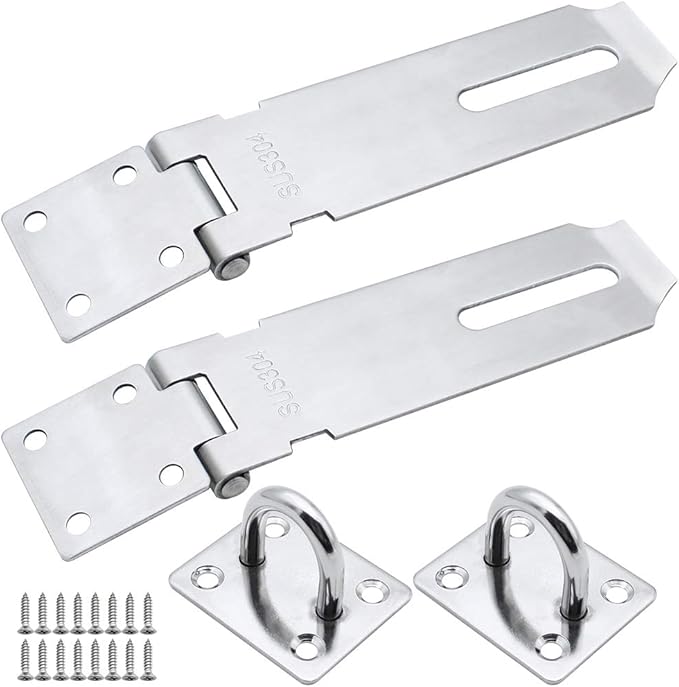 Fabriqué en acier de bonne qualité (2,5 mm d'épaisseur) avec revêtement en poudre de haute qualité ou galvanisé pour une protection longue durée. Fabriqué en acier avec un revêtement résistant à la corrosion. Installation facile : quelques vis peuvent fixer fermement la boucle du cadenas. Large application : ce loquet robuste vous apportera une sécurité supplémentaire et est adapté pour les endroits importants ou dangereux tels que les portes, tiroirs, armoires, cages pour animaux domestiques, fenêtres, coffres, boîtes électriques, déchiqueteuses, etc. Caractéristiques : Loquet et agrafe de bonne qualité et solide que vous pouvez utiliser partout où vous en avez besoin : portes, portails, abris de jardin, armoires, etc. 【Taille】 - Il y a 5 types. Robuste et durable : fabriqué en acier inoxydable robuste avec une résistance maximale à la corrosion et une durabilité, les loquets de verrouillage de... Sécurité : ce loquet de sécurité adopte un traitement épaississant, et les barres de connexion utilisent également un traitement solide et épais, ce qui le rend résistant à la casse, au cisaillement et ne se déforme pas facilement, vous donnant plus de sécurité. Vous pouvez utiliser le loquet robuste pendant une longue période en toute confiance. Outils de qualité professionnelle. Pas besoin d'un réparateur, vous n'avez besoin que d'un tournevis, vous pouvez l'installer seul, et vous pouvez régler la position d'installation comme vous le souhaitez. Loquet et agrafe en acier inoxydable, serrure de sécurité solide, hangar de porte pour cadenas acheter à prix bas - livraison gratuite, avis réels avec des photos Serure Pour Porte GOLRISEN Fermoir Pour Cadenas En Acier Inoxydable Loquet De Porte 304 Moraillon Pour Porte Cadenas Caractéristiques : Loquet et agrafe très résistants.