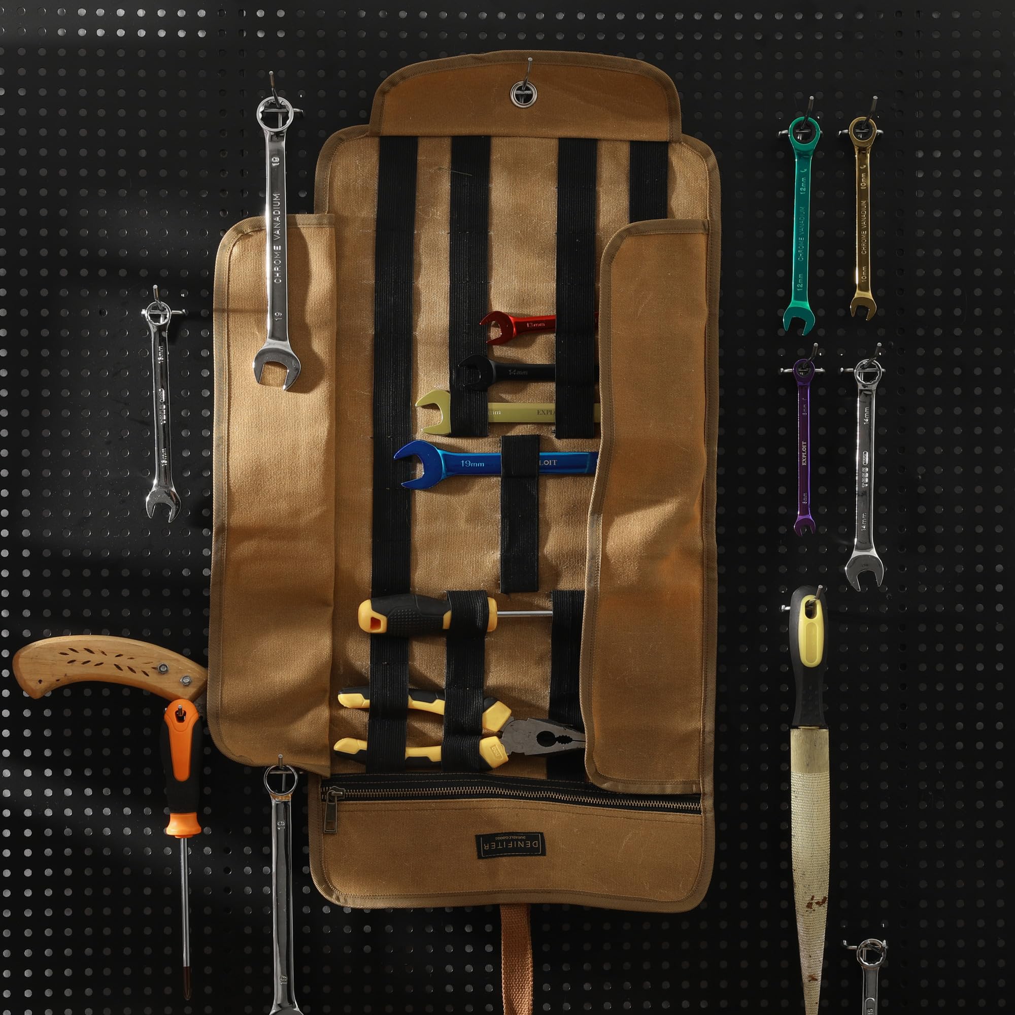 Matériau : toile de coton ciré robuste de 473,6 g, durable et imperméable. C'est un excellent cadeau pour votre famille ou vos amis, il peut garder vos outils à main en sécurité, propres et séparés. Rouleau à Outils en Toile Cirée Robuste - Leroy Merlin Facile à déployer Roulé de conception pour un accès rapide et un rangement compact. Capacité étendue 15L de stockage pour une variété d'outils, idéal pour les professionnels Plusieurs occasions : il convient pour les constructeurs, les ingénieurs, les artisans, les concepteurs d'intérieur, les concepteurs de jardin, les artistes et les bricoleurs. Sac à Outils, Rouleaux D'outils En Toile Cirée Robuste De 473,6 G Avec Dimensions (L x l) : 62 x 32 cm. 1 poche zippée lisse pour ranger des outils tels que des rouleaux de burin, un marteau, une pince, une règle, des ciseaux, des crayons, un mètre ruban, un niveau magnétique, des tournevis, des lunettes de sécurité, des gants, etc. Les sangles en toile vous permettent d'ouvrir et de fermer la pochette à outils rapidement. Sac à Outils En Toile Cirée Robuste De 473,5 G, Pochette à Outils Enroulable, Organiseur à Outils, (L) 63,5 Cm X (H) 36,8 Cm, Gris Ne rétrécit pas facilement...
