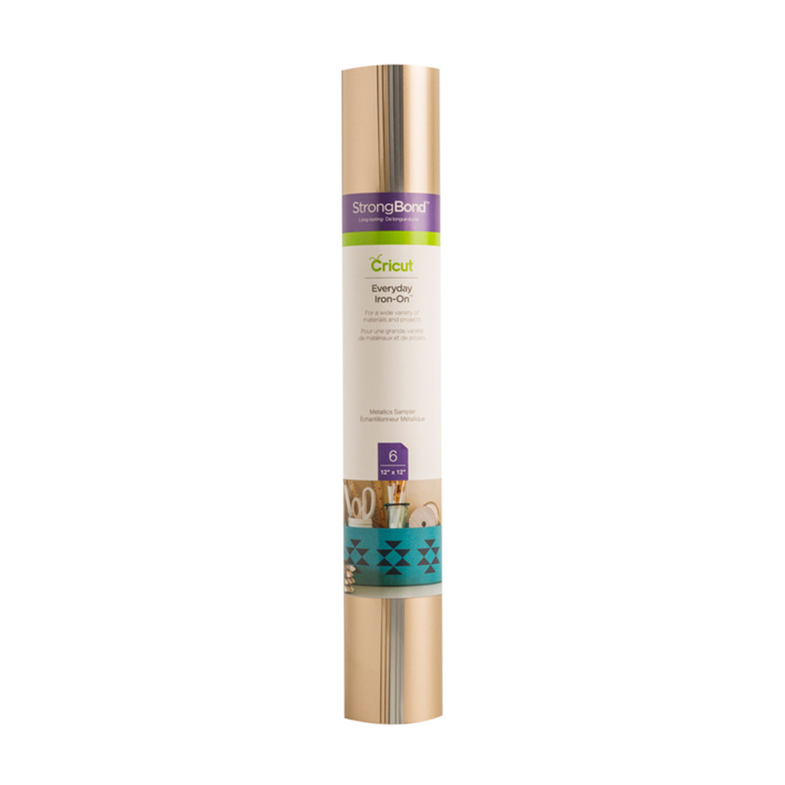 Description du produit Cricut Everyday Iron-on Metallics Sampler 12x12 Avertissement De Sûreté garder hors de portée des enfants D'excellents résultats sur la plus grande variété de matériaux et de projets Résiste à plus de 50 lavages Les dessins complexes sont faciles à découper avec votre machine , et vous pourrez facilement séparer pour préparer une application parfaite. Créez un T-shirt portant une devise pleine d'inspiration, créez un décor chaleureux pour la maison, embellissez vos accessoires avec des motifs uniques et réalisez des cadeaux faits main qui... 6 feuilles de fer à découper, métallisées, 30,5 cm (12 pieds); D'excellents résultats sur la plus grande variété de matériaux et de projets... Cricut Everyday Iron On Collection Everyday Iron-On™, Métallique | Shop Thermocollant Cricut Cricut - 2004816 - Echantillon Tous Les Jours, Bases Everyday