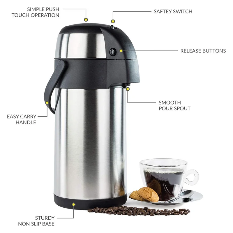 Cafetière Thermos TOMAKEIT Airpot Carafe à Café Thermos 3 L En Acier Inoxydable Isotherme Pour Eau Chaude/froide Thermos Café 2l Il vous permet de profiter à tout moment d'un café parfumé. 760g ~ 835gIsolation : la température de l'eau peut être maintenue à 50-60 degrés après que le produit a été rempli d'eau bouillante pendant 12 heures, et maintenue à environ 40 degrés après 24 heuresForfait inclus :1 X Thermo Pot Grâce aux tests, la boisson a été chauffée pendant 12 heures ou réfrigérée pendant 24 heures sans ouvrir fréquemment le couvercle. Autres attributs Point d'origine Guangdong, China Type des Outils de Boisson Flacons à vide et Thermos Personnes applicables Tous les Forme Coupe droite Production Pot de thermos Type en métal Acier inoxydable Dispositif Portable, Entreprise, Durable, Large capacity, Affichage de la température, En stock Marque nom umbottle Numéro de Type UMR19K140B-T Nom Hôtel chaud petit verre... La poignée isolée est facile à saisir et évite les brûlures aux mains. Gr ce aux tests, la boisson a t chauff e pendant 12 heures ou r frig r e pendant 24 heures sans ouvrir fr quemment le couvercle. 14 * 25 cm/5,5 * 9,8 pouces#2L : env. La grande ouverture facilite le nettoyage. et peut être utilisée pour stocker une variété de boissons et d'eau, avec une large gamme d'applications et une utilisation polyvalente. Concept de design Conception technique plus optimis e, avec une petite ouverture con ue au bord de la porte verseuse pour r duire la pression lors du remplissage d'eau chaude et emp cher le couvercle de s'ouvrir pour assurer la temp rature, Caract ristiques La conception en forme de U du port verseur est facile remplir et verser. Conception compacte; Pompe à actionnement; Convient aux boissons chaudes et froides; Toucher cool; Poignée de transport. Vidéo connexe... Utilisation polyvalente adoptant la technologie thermos sous vide double paroi pour verrouiller la temp rature afin de maintenir la saveur et la fra cheur, il est tr s adapt pour contenir des boissons froides et chaudes. Large gamme d'utilisations : la cafetière est très adaptée pour stocker et fournir du café, du thé, du chocolat chaud, etc. TMISHION Pot à eau Carafe Thermique Cafetière Isotherme Grande Capacité Concept de design : Conception technique plus optimisée, avec une petite ouverture conçue au bord de la porte verseuse pour réduire la pression lors du remplissage d'eau chaude et empêcher le couvercle de s'ouvrir pour assurer la température Large gamme d'utilisations la cafeti re est tr s adapt e pour stocker et fournir du caf , du th , du chocolat chaud, etc. 14 * 29,5 cm/5,5 * 11,6 poucesPoids du produit : env.