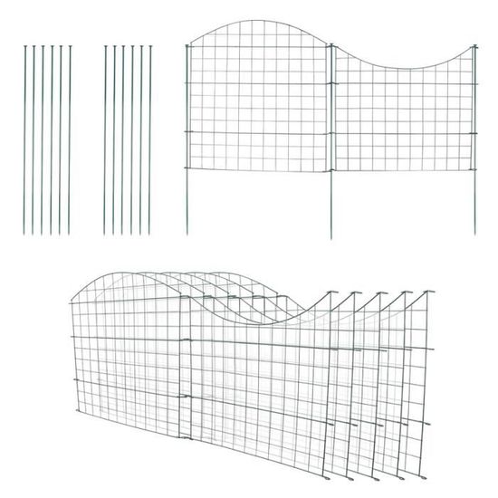 Les éléments de la clôture sont revêtus par pulvérisation et donc très résistants à la rouille, aux intempéries et au gel. Izrielar Clôture de jardin, Set clôture d'étang, clôture d'étang à... Modèle : droit/inférieur/arc. La clôture jardin consiste en acier robuste et sera plantée dans le sol à l’aide des piquets. L'arche inférieure et l'arc supérieur sont coordonnés, ou les arcs inférieurs, les arcs supérieurs et les « droits » sont assemblés et coordonnés pour un design personnalisé. Cette clôture d'étang est livrée en kit, composée des éléments de clôture et des tiges de fixation. Vous pouvez agrandir les clôtures à volonté avec des éléments de clôture et ainsi créer votre propre clôture d'étang, clôture pour petits animaux, clôture métallique ou clôture enfichable pour chiens. La clôture est polyvalente : comme clôture de protection pour les enfants pour les étangs, les ruisseaux et les piscines, comme délimitation de jardin, clôture de camping, enclos pour animaux et enclos pour chiots. Ensemble de clôture de jardin : métal, vous recevrez en lot de 22 pièces, composé de 10 éléments de clôture en treillis et de 12 barres de fixation, un ensemble a une longueur totale d'environ 3,75+3,75 m, il est extensible à volonté. Montage facile : il suffit de passer les barres de fixation à travers les œillets latéraux des éléments de clôture, puis d'ancrer fermement les barres massives dans le sol. Dimensions de chaque clôture de bassin : Champ de clôture : l x H environ 77,5 x 64 cm. Clôture D'étang Arche Inférieure Ensemble De 11pièces Vert 5 éléments De Clôture ESTEXO Flexible extensible : vous pouvez étendre les clôtures à volonté avec des éléments de clôture. HENGDA Clôture d'étang Clôture de jardin Clôture en treillis Ensemble - Assurer une bonne délimitation dans le jardin. L'aspect vert fortement saturé rend votre jardin plus beau. Les barres intermédiaires des éléments de clôture de jardin peuvent être facilement frappées dans le sol. Avec ce kit complet de clôture, vous pouvez former une clôture de bassin, une clôture de chien, une clôture de camping, une clôture pour petits animaux à accrocher ou une simple bordure d'étang. Avec cet ensemble complet de clôture, vous pouvez former une clôture de bassin, une clôture pour chien, une clôture de camping, une clôture pour petits animaux à brancher ou une simple bordure de bassin. 🌕Facile à installer il suffit d'enfiler les tiges de fixation dans les œillets situés sur le côté des éléments de clôture...