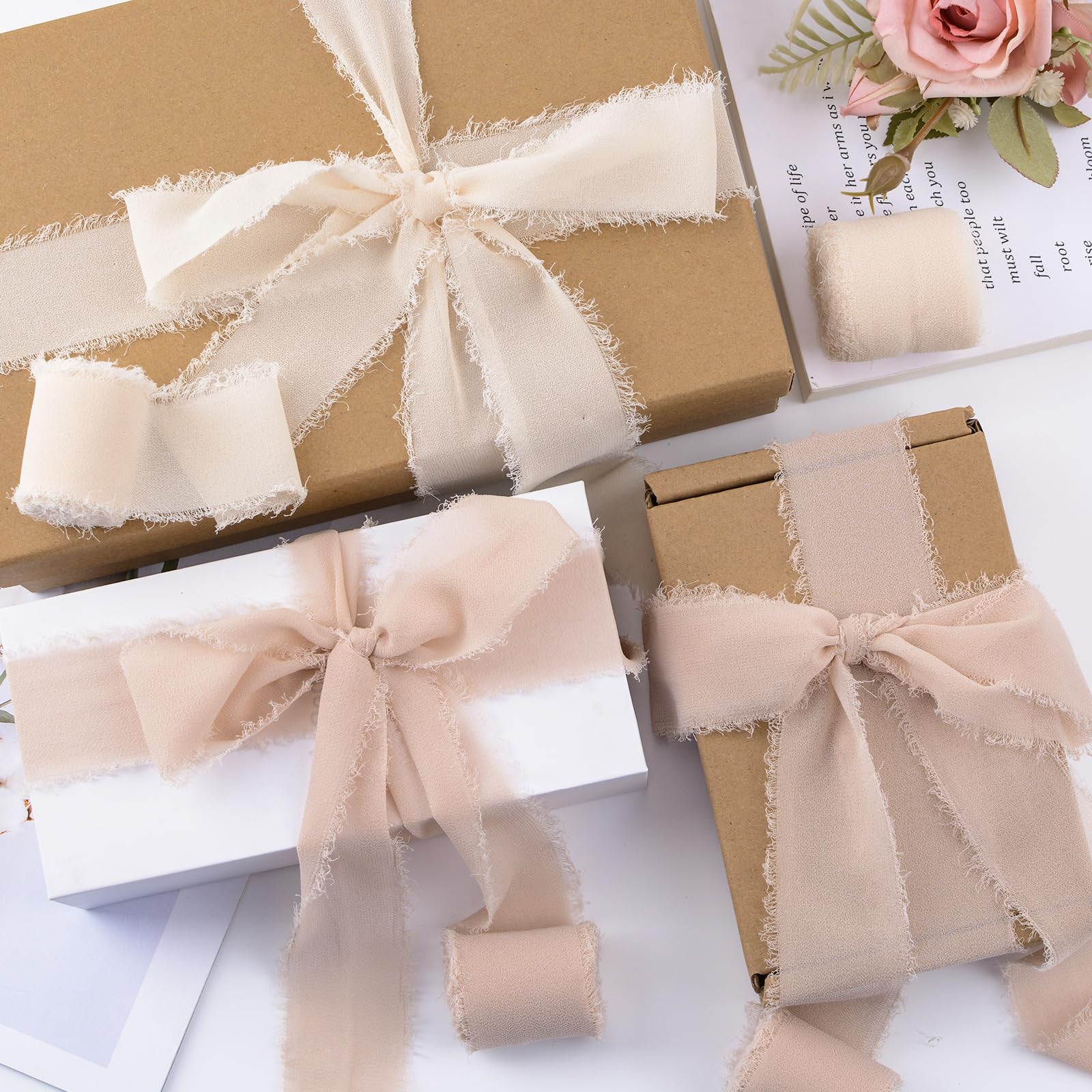 Rouleaux de mousseline de qualité supérieure Matériau de qualité supérieure : fabriqué en mousseline de soie de qualité supérieure, léger et délicat. Contenu de l'emballage : ce kit comprend 4 rouleaux de franges en ruban de mousseline. Ruban Blanc HASUDEI 3 Rouleaux Ruban Mousseline De Soie 3,8cm X 6m Ruban Cadeau Ruban Cadeau Emballage Décoratif Ruban De Tissu Ruban Rose Pour Invitations De Mariage, Décorations De Fête D'anniversaire Parapluie Transparent Search faster with PicClick Visual Search. Fabriqué à la main : ce ruban à franges en mousseline de soie est fabriqué à la main à chaque étape du chemin, y compris l'effilochage, la déchirure en rubans... Choix de plusieurs couleurs Décoration idéale c'est une décoration parfaite et une finition idéale pour l'emballage de cadeaux, les travaux manuels, les projets de bricolage, la décoration de bouquet, la décoration de couronne ou la décoration de la maison Couleur élégante : choisissez une couleur rose douce, qui convient à de nombreux styles et occasions. Chaque rouleau mesure environ 5 m de long et 3,8 cm de large. 4X RUBAN EN mousseline de soie à franges comme ruban bords