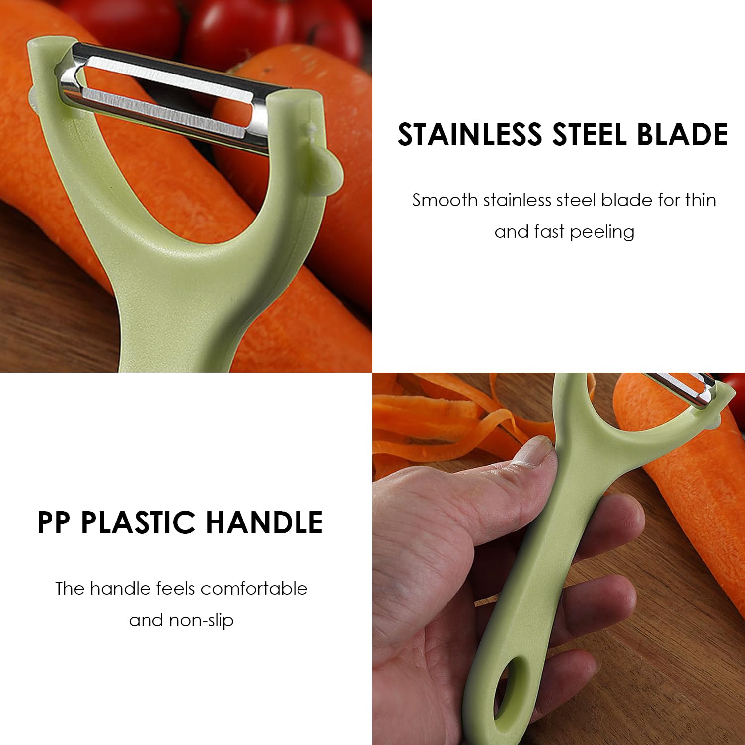 Matériel: Acier Inoxydable + Pp Quantité : 4 Pièces Caractéristiques 1., Cet Éplucheur De Pommes De Terre Est Fabriqué En Acier Inoxydable Et En Pp. 【Large Application】 Ce Produit Convient Non Seulement Pour Éplucher Les Pommes De Terre, Mais Également Pour Éplucher D'Autres Fruits Et Légumes, Tels Que Les Carottes, Les Pommes, Etc. C'Est Un Appareil Pratique Dans Votre Cuisine Et Convient À La Cuisine Quotidienne À La Maison. Couteau éplucheur Pour Fruits Éplucheur Économe Légumes Professionnel, Éplucheur De Pommes De Terre Pluche Pomme Avec Lame Dentel En Acier Inoxydable Et Poigne Ergonomique Antidrapante Pour Lgumes Carottes Tomatesorange 69147817 Eplucheur Pomme L'Espace Entre La Lame Et Le Manche Est Conçu De Manière Appropriée, Ce Qui Facilite Le Nettoyage Et Le Maintien De L'Hygiène. éplucheur Electrique Fruit Éplucheur De Chou à Bouche Large; Éplucheur De Fruits; Éplucheur De Pommes De Terre à Légumes En Acier Inoxydable Trancheur De Fruits Gadget De Cuisine Machine A Eplucher Les Pommes De Terre Les Lames Sont Tranchantes Et Durables, Et La Conception De La Poignée Antidérapante Est Pratique Pour Éplucher Divers Fruits Et Légumes., 2., Facile À Nettoyer Et À Entretenir, Adapté À La Cuisine Quotidienne À La Maison. 【Contenu Du Produit】 Vous Recevrez 4 Éplucheurs De Pommes De Terre De Dimensions 14, 8 X 7, 5 X 2, 5 Cm Et De Couleurs Vert, Jaune, Rouge Et Noir, Qui Conviennent Pour Éplucher Les Fruits Et Légumes. Avertissement De Sûreté No Avec sa lame de 5cm en acier inoxydable de haute qualité et son manche ergonomique de 9cm, il glisse parfaitement à travers toutes les peaux...