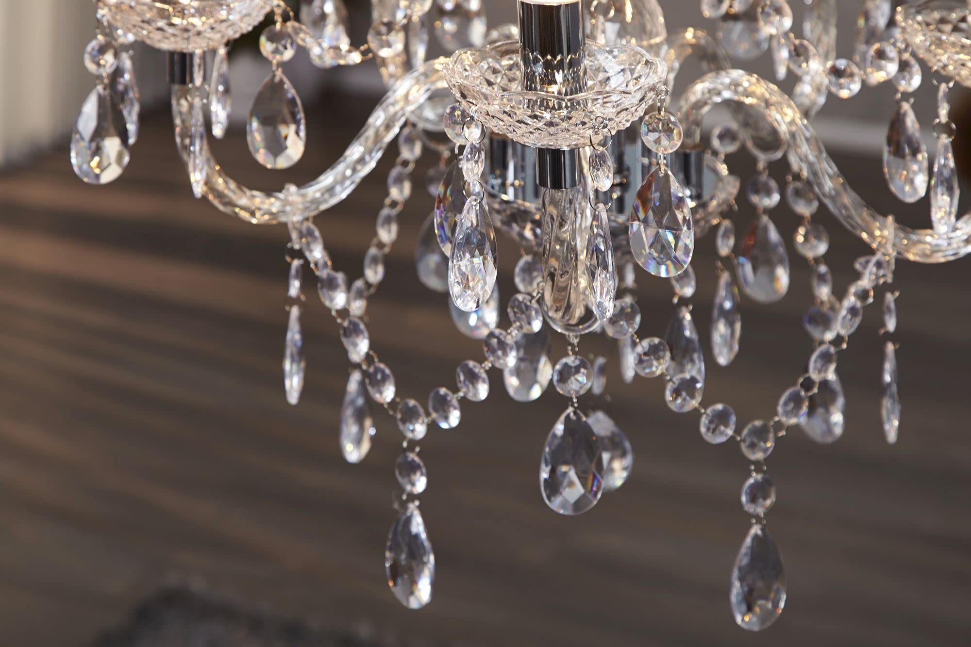 largeur : 740 mm | profondeur de suspension : 770-1500 mm | longueur : 740 mm Grand lustre en cristal pour la salle à manger et le salon ; Le design ludique de la suspension met un accent décoratif dans chaque pièce grâce aux cristaux de verre étincelants ; Réglable en hauteur : parfait au-dessus de la table à manger Libre choix de l'ampoule : L'intensité et la couleur de la lumière peuvent être modifiées grâce aux ampoules LED et adaptées à chaque pièce | non incluses ; conseil : le luminaire est élégant avec des ampoules en forme de goutte ou de bougie. Lustre Verre de Murano Candiano 8x60W gris Plafonnier métal verre laiton blanc chambre salon Le lustre est fabriqué en verre et en métal de couleur laiton.Grâce à son design classique, il donne un accent élégant à votre maison... Lustre En Cristal Transparent Suspension Européenne Pour Salon Chabre à Coucher Lustres et suspensions pour salon