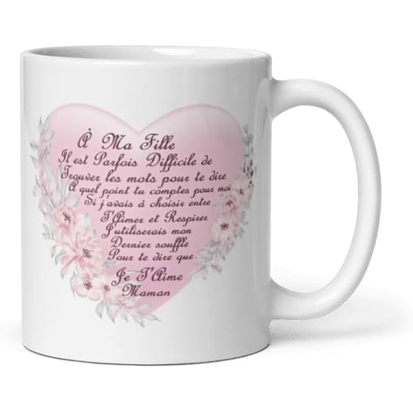 Contenance du mug : 325ml Il y aura aussi des mugs pour sa femme ou son mari, sa chérie ou son chéri, bref il y en aura pour tout le monde ., ., ., ., ., ., Voici quelques informations concernant les mugs de la marque Française Kalféa Hauteur du mug : 9., 50cm Mug Noel Kalféa Mug Ma Fille D'amour Je T'aime Tasse Belle Fille Haute Cadeau Personnalisé Fille Comment nous concevons vos mugs étape 5 à 8 Refroidissement du mug La cinquième étape consiste à sortir le mug de la presse et retirer le papier sans se brûler. Emballage du mug La septième étape consiste à protéger le mug pour son transport. ❤️ TRANSPORT ET LIVRAISON : Ce mug vous sera expédié directement par Amazon pour une livraison rapide, il sera dans une boîte anti-chocs Votre satisfaction restant une priorité Pour cela nous avons fait fabriquer des cartons spéciaux qui viennent s'enrouler autour du mug pour qu'il ne soit pas en contacte avec les bords et être à l'abris des chocs. La chaleur et la pression exercées sur le mug feront transférer l'encre du papier à l'intérieur de la céramique. Savez-vous comment nous imprimons et personnalisons vos mugs ? Sur cette photo, le mug est emballé dans son carton anti-chocs mais pour éviter les surprises, il sera inséré dans un autre carton avec un calage supplémentaire. Pour cela, nous avons crée des collections avec différentes thématiques, vous retrouverez donc parmi nos modèles des mugs humoristiques, des mugs pour les anniversaire, des mugs avec les signes du zodiaques, des mugs avec des licornes pour les enfants (ou même les grands), des mugs avec des citations drôles ou plus sérieuses, des mugs pour célébrer une retraite bien méritée, des mugs pour annoncer la super nouvelle d'une naissance, des mugs dédiés à l'amour (vaste sujet) sans oublier les mugs à personnaliser directement en ligne. Anti Rayures du mug La sixième étape aura pour but de bien essuyé le mug puis le mettre dans un sachet spécifique qui lui évitera les rayures pendant le transport, rassurez-vous il y a d'autres protections. Compatible Lave-Vaisselle Nous utilisons la technique de marquage par sublimation. ❤️ SUPER CADEAU : Une idée cadeau originale à offrir à sa fille ou belle-fille ou certaines personnes qui sont surnommées comme cela, avec des coeurs et l'inscription je t'aime au dos Comment nous concevons vos mugs étape 1 à 4 Réalisation du Visuel La première étape est de créer le visuel qui sera imprimé sur le mug. ❤️ POUR TOUTES OCCASIONS : un mug à offrir à Noël, pour un anniversaire ou une fête ou tout simplement pour faire plaisir à votre fille chérie qui pensera tous les jours à vous en prenant sont petit-déjeuner Impression du visuel La seconde étape est d'imprimer le visuel qui a été crée. Même avec une boisson très chaude, la anse du mug restera froide pour éviter les brûlures. Compatible Micro-Ondes La qualité de la céramique utilisée pour nos mugs (AAA) offre une très grande résistance. Pour cela nous avons crée des mugs en essayant d'oublier personne. L'ensemble de nos modèles sont uniques et vous garantissent une très grande qualité. Nous avons pensé utile de vous expliquer la réalisation de l'impression des mugs ci-dessous. Contrairement à l'habitude, nous ne faisons pas une cuisson mais deux, ce qui permettra que l'impression ne s'efface pas dans le temps. Nous garderons secret ce procédé ainsi que les temps et températures de cuissons qui ne sont pas celles généralement utilisées. Emballage Anti Chocs Afin que votre mug vous arrive dans un état irréprochable, celui-ci sera individuellement emballé dans un emballage sur mesure et anti-chocs. Mug Ma Fille Je T’Aime Humour Tasse Message Drôle Amour Idée Cadeau... Kalféa : La personnalisation à la Française En choisissant ce modèle de la marque Kalféa, vous ferez confiance à une entreprise française qui réalise elle-même ses designs et ses impressions. Vous trouverez dans nos collection des mugs pour mamie et papi, maman et papa, frère et soeur, tata et tonton, marraine et parrain, cousine et cousin, collègue et ami(e) ou tout simplement pour des potes. Poids net du mug : 338grs Mug - Belle-Mère je t'aime - 6 Coloris - Cadeau Original – Cadeaux 40 Messages d'amour pour ma fille (2024 Cuisson du mug La quatrième étape consiste à cuir le mug. La Poignée Reste Froide La sécurité est importante pour les adultes comme pour les enfants. Comme vous pouvez le constater, nous mettons toutes les chances de notre côté pour que votre mug soit préservé. Il y a toujours un cadeau à faire à un membre de la famille, à un collègue, à des amis, à ses enfants ou parents sans oublier les grands parents. Diamètre du mug : 8cm ❤️ TOUJOURS SOUS LA MAIN : Ce mug amour je t'aime ma fille d'amour avec coeurs rouges servira aussi bien pour un bon café comme un bon chocolat avec des céréales, il servira aussi de grog ou pour boire une bonne soupe ou un thé ou une camomille