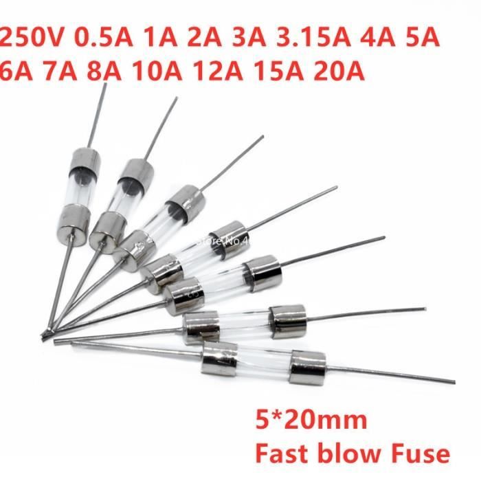 Caractéristiques: tension nominale 250 V, courant nominal 10 A, spécifications 6 x 30mm, fusion rapide, faible pouvoir de coupure, fusibles en tube de verre. Vérifiez la dimension d'origine de votre fusible avant d'acheter: diamètre du corps, longueur du corps, courant nominal, tension nominale. Courant nominal: 10 A; Spécifications: 6 x 30mm , Diamètre: 6mm/0., 236; Longueur: 30mm/1., 181 Optionales Zubehör Fusible fin 0,16A / 250V / T / H (10 piéces) Numéro d'article: 94-260207 Prix: 9,58 Idéals pour protéger vos circuits électriques contre les surcharges et les courts-circuits. Lot de 20 fusibles en verre à fusion rapide de marque Sourcing map. Nom du produit: Fusibles à tube de verre; Caractéristiques: Fusion Rapide (F), faible capacité de coupure (L); Tension nominale: 250 V Fusible 2a 250v Fusible Sourcingmap Sourcing Map- 5Pcs 250V F15A Coup Rapide Fil Conducteur Fusibles Céramique Fusion 5 20pcs 6x30mm 20A 250V fusion rapide bas puissance coupure fusible Tube Remarque: veuillez couper l'alimentation avant votre remplacement. Caractéristiques: tension nominale de 250 V, courant nominal de 10 A, spécifications 6 x 30mm, fusion rapide, faible pouvoir de coupure, fusibles en tube de verre. 100 fusibles en tube de verre avec fonction de soufflage rapide. Convient aux équipements électriques. Besoin de connaissances professionnelles pour utiliser ce produit