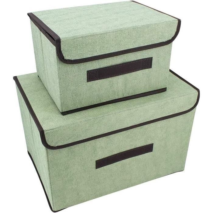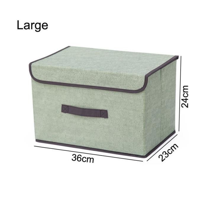yfzyt pratique et beau style boîte de rangement pour linge, livres, jouets et plus Spécifications : – Matériau : Lin avec du carton – Dimensions (L x l x H) : Small : 14 l (32*24*18 cm) ; moyenne : 26 l (37*27*26 cm) ; Large : 38., 3 l (44*30*29 cm) – Couleurs : gris, vert, café, beige, plusieurs tailles et couleurs au choix Précautions : – Ne pas laver, utiliser une serviette humide pour nettoyer la surface propre et sèche. Plusieurs tailles pour répondre à vos différents besoins Matériau : fabriqué en épaisse carton emballé avec chiffon de lin de qualité supérieure imitation. décrire:Matière principale : coton et linCouleur : beigetaille:30*20*14cm38*26*16cm40*30*21cm45*35*26cm49*37*31cmCaractéristiques:MATÉRIAU DE HAUTE QUALITÉ: Fabriqué en coton et lin de haute qualité, garantissant durabilité et utilisation durable. Le matériau garantit un toucher haut de gamme et améliore l'apparence générale.Plusieurs tailles : nos boîtes de rangement sont... Boîtes de rangement | Coffre de rangement et couvercles 3 pcs Blanc... Ayhao2 Boîtes De Rangement Avec Couvercles 10 Pcs 28x28x28 Cm Crème Inclus dans la livraison : 1 x Box Lot de 2 boites de rangement - Harmonie - 50 x 35 x 35 cm - Gris Nuage Design caractéristique : design pliable avec couvercle amovible et poignées métalliques renforcés, économiser de l'espace, étanche à la poussière, robuste, confortable. Fond en toile solide côtés et renforcée ainsi que de garantir la durabilité et l'usure Élégant style : la tendance élégante couleurs ajoute une sensation de fraîcheur et de rangement à votre chambre, ce qui est votre meilleur choix