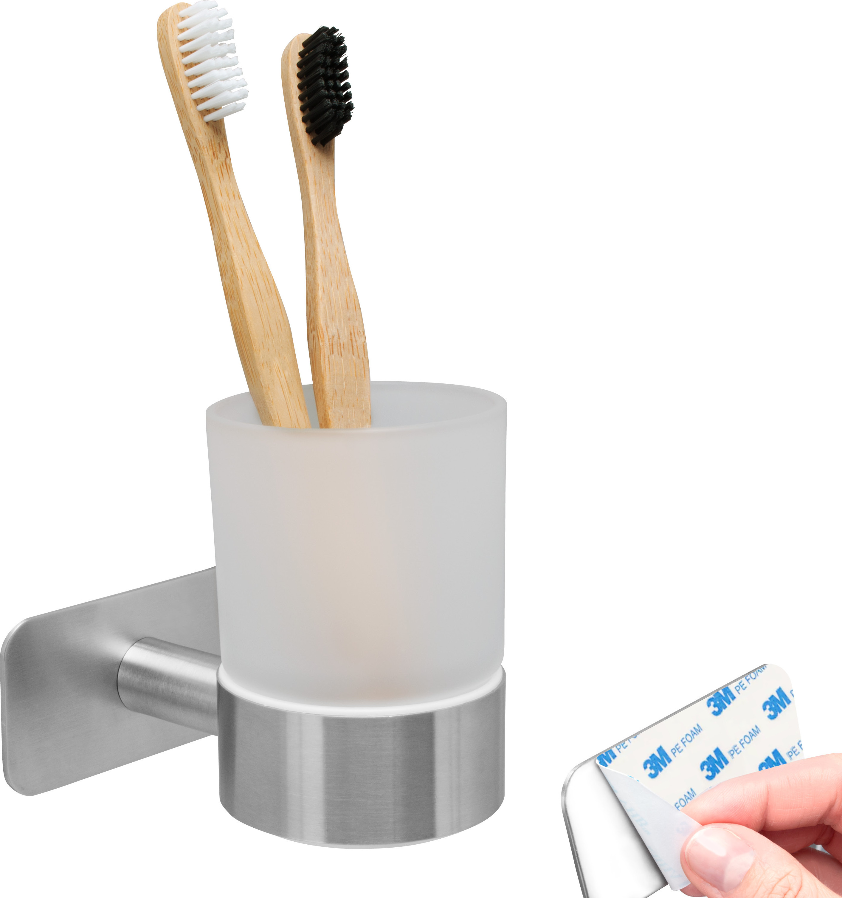 Simple mais pratique - Ce support design en acier inoxydable Purezza a des encoches pour 4 brosses à dents. Matériau : acier inoxydable poli Porte-Brosse À Dents Verre/Acier Inoxydable Chrome Thymus Également... Vous pouvez installer le support de brosse à dents Purezza de 2 façons différentes. Cet espace peut être utilisé pour le dentifrice, le corps de la brosse à dents électrique ou pour d'autres petits objets tels que le fil dentaire ou des décorations. Après chaque utilisation, toute la famille peut accrocher directement la brosse correspondante. Le plateau intégré vous permet de placer de petits objets. L'option 1 est la solution adhésive. Le séchage à l'air libre empêche l'humidité dans votre placard tout en laissant des surfaces libres sur le bord du lavabo. Montage pratique à 2 voies - Une idée exclusive conçue en Allemagne. COSMIC Porte-brosse À Dents Architect Blanc Noir Mat | Leroy Merlin Porte Brosse à Dent Extérieur Bremermann Porte-brosse à Dents PUREZZA à Coller Ou à Percer Porte Brosse Pour Dent Les bouchons en silicone couvrent les découpes des vis.