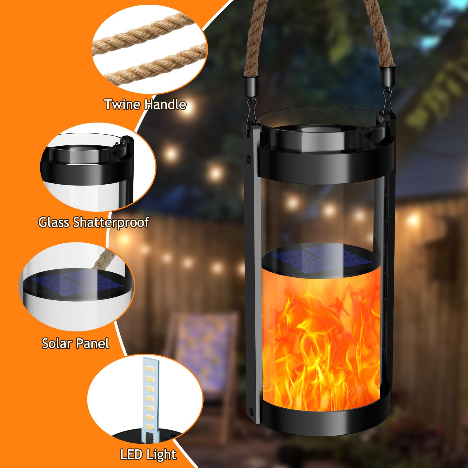 Améliore considérablement la durabilité et prolonge sa durée de vie. Lanterne solaire à flamme vacillante à suspendre - Éclairage décoratif à énergie solaire - Étanche - Pour patio, jardin, terrasse, cour, Halloween Cet ensemble de quatre lampes de jardin à énergie solaire améliorées présente un design unique, une hauteur réglable et des LED à filament plus lumineuses. Avec un indice d'étanchéité IP65 et une installation facile, ces lumières sont parfaites pour éclairer et décorer votre cour, votre allée, votre terrasse et plus encore Lumières de jardin à flamme vacillante : la bande LED intégrée simule parfaitement l'effet réaliste de flamme dansante. Contrairement aux lampes torches décoratives traditionnelles, ces lampes solaires de jardin ne nécessitent pas de carburant, donc respectueuses de l'environnement et économes en énergie. C'est également un excellent choix de cadeau pour vos amis et votre famille en toutes occasions. L'effet de lumière orange joyeux et vif crée une atmosphère confortable et agréable à la tombée de la nuit. KOOPER Lanterne solaire à lumières extérieures, lanternes Vous pouvez profiter de la meilleure expérience d'éclairage extérieur à effet de flamme tout le temps. Nombreuses utilisations et idée cadeau : placez une paire ou plusieurs lampes solaires à effet de flamme extérieure dans votre jardin, pelouse, patio, allée, cour. Assurez-vous qu'ils peuvent recevoir suffisamment de lumière du soleil. Lanterne Solaire Exterieur KOOPER Lot De 2 Lanternes Solaires à Suspendre Avec Lanterne De Jardin Solaire La lanterne à énergie solaire utilise des perles LED améliorées, ce qui crée une ambiance romantique et accueillante et est plus lumineuse que les autres... Bonne performance par tous les temps, chaleur, vent, pluie, neige, gel. Facile à installer et marche/arrêt automatique : pas de câblage nécessaire, il suffit de placer ces lampes solaires de jardin sur le sol ou de les accrocher ou de les clipser partout où vous le souhaitez.