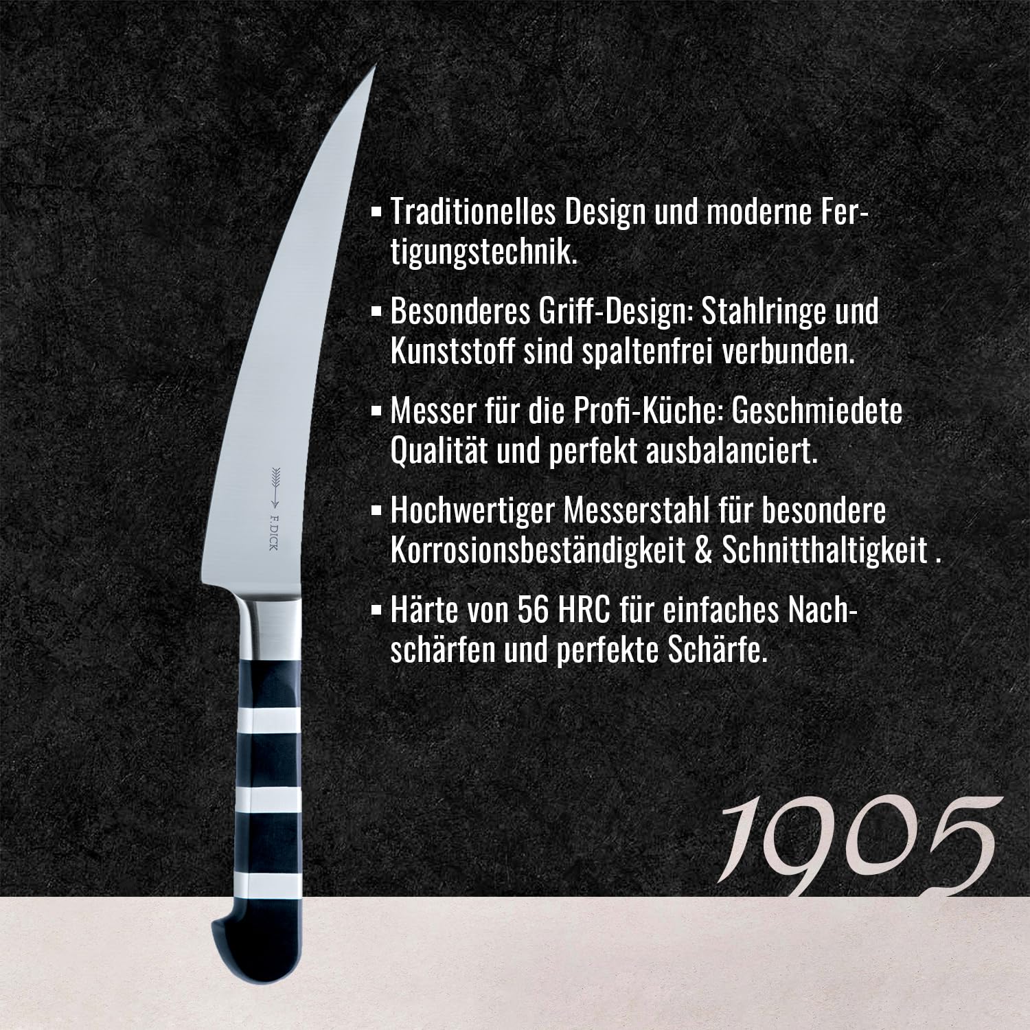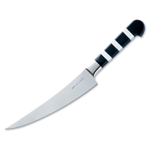 Le manche en polyoxyméthylène (POM) offre une grande résistance au travail ainsi qu'une dureté extrême avec une sensibilité à la température relativement faible jusqu'à environ 110°C. DICK 1905 - Couteau De Chef 21cm 56° Rockwell (HRC) est le compromis parfait entre un tranchant de longue durée et un réaffûtage facile. Type de couteau de cuisine. Couteau à trancher ; Matériau de la lame. Acier au chrome-molybdène ; Longueur de la lame. 21 cm ; longueur totale. 337 cm ; Poids. 0.11... Couteau à Pain - 21 cm : un couteau japonais d'exception pour une Dick Couteau à découper 21 cm - Couteaux de cuisine | à partir de 60,10 € | Comparer les prix avec ! Die exklusive Dick Messerserie 1905 verbindet klassisches Design mit modernster Technologie, höchstem Hygieneniveau sowie exzellenter Qualität und Funktionalität Si vous utilisez beaucoup votre couteau, vous serez très satisfait de cet équilibre. Elle présente également une bonne résistance aux produits chimiques