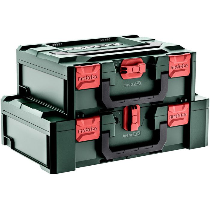 metabo Akku-Stchsäge ST 18 LT 130 BL, Ohne Akku n metaBOX 145 L metaBOX 145 L pour SBE / KHE / UHE Système de transport et de rangement intelligent pour un travail mobile Protection optimale des machines et accessoires contre la saleté et l'humidité (IP43). metaBOX 145 L, vacío (626884000 Metabo MetaBOX 145 L Pour SBE / KHE / UHE 626892000 Accessoires astucieux : planche à roulettes pour une mobilité maximale et plaque adaptateur pour sécuriser les boîtes dans le véhicule Volume de la mallette : 14,1 l. Caractéristiques techniques : Dimensions : 496 x 296 x 145 mm. Deux au choix : poignée avant confortable pour un transport près du corps et poignée de couvercle extra large pour transporter plusieurs boîtes en empilage. Une boîte dans la pile peut être facilement ouverte sans la séparer. Metabo metaBOX 145 L leer (Neu (gemäss Beschreibung)) in Hombrechtikon... Extrêmement robuste et incassable grâce au matériau et à la forme pour une charge maximale