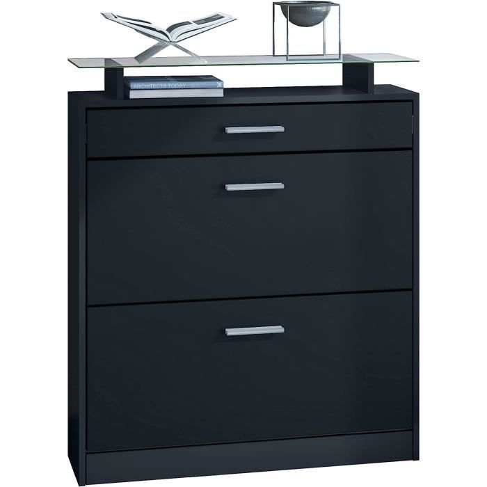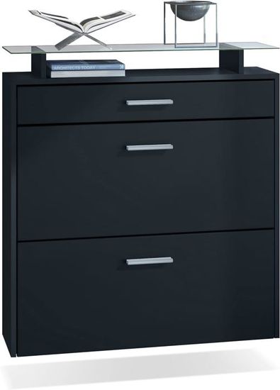 Surface en matériau facile d’entretien Les matériaux de finition haut de gamme et le revêtement des façades et du caisson font de cette armoire à chaussures un meuble à la fois léger, solide et facile d’entretien. tiroir : 10 kg Charge max. Le nettoyage ne nécessite aucun produit chimique : il suffit d’utiliser un chiffon légèrement humide pour nettoyer la surface résistante à l’eau de l’étagère pour chaussures. Pour un maniement aisé, les tiroirs de la commode sont montés sur des rails télescopiques en métal qui glissent silencieusement. Meuble chaussures Annie, Armoire à chaussures murale pour 16 paires de Chausse Pied Long Metal Vladon s Malea, Armoire à Chaussures Murale Pour 16 Paires Avec 2 Clapets, 1 Tiroir Et 1 Tablette En Verre, Blanc Mat/Denim Mat (89 X Meuble Chaussure Meuble de rangement : Cette armoire à chaussures murale est une véritable merveille. La petite tablette en verre au-dessus du meuble à chaussures permet de déposer divers objets. Ouverture facile grâce aux poignées encastrées design La façade de ce meuble à chaussure design est dépourvue de poignée afin d’en souligner l’aspect minimaliste. Design : Le caisson de la commode à chaussures en Blanc mat et les façades en Avola-Anthracite créent une ambiance moderne et chaleureuse. Verre, Blanc Mat/Blanc Mat (89 x 96 x 23 cm). 172,67 €. sur ... Vladon Meuble Chaussures Annie pour 16 Paires de Chaussures avec 2 clapets et 1 Tablette... commode à chaussures complète : L’armoire à chaussures peut supporter jusqu’à 5 kg. Le design moderne et épuré de nos meubles s’adapte parfaitement à vos envies : Vladon propose de multiples coloris et surfaces pour votre nouveau meuble. Laissez libre cours à votre créativité en composant votre meuble rangement chaussures Annie. Dimensions du meuble rangement pour chaussures en cm (LxHxP) : 89 x 96 x 23 Avec la notice de montage simple et illustrée, vous n’aurez aucun problème pour monter le meuble vous-même. Dimensions armoire à chaussures Annie Meuble à chaussures (LxHxP) : 89 x 96 x 23 cm, Clapet casier à bascule (LxHxP) : 83 x 36 x 20 cm Support à chaussure simple (LxP) : 85 x 10 cm, Tiroir extérieur (LxHxP) : 85 x 12 x 20 cm, Tiroir intérieur (LxHxP) : 82 x 8 x 19 cm Surface sous le verre (LxH) : 71 x 8 cm, Tablette en verre (LxP) : 89 x 23 cm Poids commode à chaussure complète : 26 kg, Charge max. La commode à chaussure est dépourvue de panneau arrière. Vous pouvez fixer le meuble à chaussures au mur à l’aide du matériel de fixation inclus dans la livraison. Avec une finition haut de gamme made in Germany, l’étagère à chaussures est à la fois discrète, légère et solide. 2 clapets dotés de doubles supports à chaussures, 1 tiroir et 1 tablette en verre permettent de ranger jusqu’à 16 paires de chaussures et divers accessoires. Contenu de la livraison : La livraison comprend le meuble à chaussure, la tablette en verre, le matériel de montage et la notice illustrée.