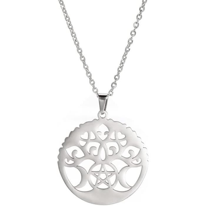 Cette phase est terminée, laissons la prochaine commencer Design du collier pentagramme - Le collier phase est une combinaison d'une phase de lune ronde et d'un pentagramme, la phase de lune symbolise le changement et le cycle du temps, tandis que l'amour est éternel, et le pentagramme représente l'argent dans les cartes de tarot, et celui qui possède les pièces de monnaie possède la richesse Cadeau Wiccan - Le collier païen symbolise l'énergie positive, la croissance et la force. Célébrez votre amour éternel avec ce collier en forme de croissant de lune. Je veux toujours me rappeler que nous avons de multiples facettes et que nous passons par de nombreuses étapes chaque jour, chaque mois et chaque année. Il symbolise la sagesse, l'intuition et les cycles de la vie Collier Arbre De Vie Triple Lune Déesse Arbre De Vie Pentagramme Lune... Amulette protectrice - La combinaison de la nouvelle lune et de l'élément pentagramme est mystérieuse, élégante et fascinante. La couleur du pendentif conservera son éclat pendant longtemps Du croissant à la demi-lune en passant par la pleine lune, tous ces changements sont magiques dans la nature. C'est un cadeau païen unique pour vous et votre bien-aimé(e). Pendentif Pentacle Triple Lune: Puissance féminine Triple Collier Argent EUEAVAN Collier Triple Déesse De La Lune Collier Pendentif Esoterisme Et Spiritualite Accessoire Design - Notre collier pentagramme met en scène les phases de la lune avec des strass étincelants.