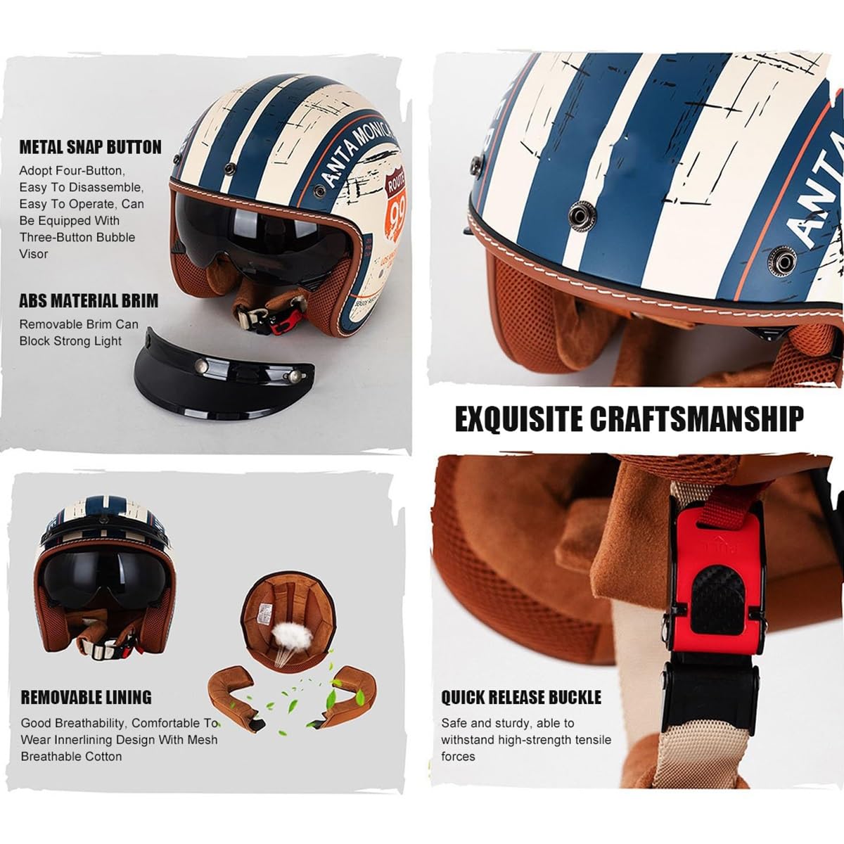 Ajoutez une visière et des lunettes personnalisées pour que votre trajet se démarque. Le casque pèse environ 800 grammes, ce qui réduit la pression sur le cou. La couleur réelle du produit prévaudra. ★【ÉQUIPE DE SERVICE PROFESSIONNEL】: Nous fournissons des produits de qualité, veuillez mesurer soigneusement votre tour de tête avant d'acheter. BAUTI Casque Moto Rétro Ouvert avec Lunettes Casque Jet en Cadeau parfait : parfait pour les cadeaux du Nouvel An, les cadeaux d'anniversaire, les vacances de Noël, les cadeaux amusants, les casques de couple. Champ d'application : hommes et femmes, Four Seasons General. Conception détachable pour un nettoyage facile, gardant l'intérieur du casque aussi propre que neuf. ❤ Détails du produit : Nom : casque jet moto Matériel: ABS + cuir PU Couche tampon : EPS Doublure : maille coton Taille du produit : 25*21*23 (cm) Poids du produit : 800 g (1,76 lb) Méthode de fixation : Boucle rapide Taille : S=(55-56 cm), M=(57-58 cm), L=(59-60 cm), XL=(61-62 cm), XXL=(63-64 cm). Conforme aux normes américaines : certifié DOT FMVSS-218 et UE : certifié ECE R 2205., ★ 【 DESIGN VINTAGE 】 : casque de moto 3/4 Open Face, a une sensation intrinsèquement vintage comme un casque de pilote dans les années 1950, offre une excellente ventilation et un large champ de visibilité et s'accorde bien avec vos motos de rue élégantes, adapté pour les croisières, les tournées, scooter et cyclomoteur. ★【DOUBLURE INTÉRIEURE AMOVIBLE】: Fabriqué en coton maillé de haute qualité, texture douce et confortable, avec une bonne absorption de la transpiration, un séchage rapide et des fonctions respirantes. Ils sont disponibles dans plusieurs modèles sur le marché, mais les casques jet font partie des plus prisés de par leur design et leur confort, à l’image des produits de la marque Shark, très sécuritaires. Le jet séduit par sa conception solide, son intérieur souvent rembourré et son style rétro ★ Si vous avez des questions, veuillez nous envoyer un e-mail. Casque Moto Jet Homologué BAUTI Casque Moto Ouvert Avec Masque Et Lunettes Casque Jet Rétro Avec Visière Amovible Casque Protection Adulte Approuvé ECE Casque Demi-Couverture Pour Homme Et Femme Croiseur 3,S(55-56CM Meilleur Casque Jet Vintage Nouveaux coloris pour les Roof Boxer, et nouveau casque jet rétro... ★ En raison de la différence de lumière, d'affichage des couleurs et d'angle de prise de vue, la couleur peut être légèrement différente. S'adapte à la tête pour un ajustement confortable. Nous vous répondrons dans les 24 heures et vous fournirons la meilleure solution. ❤Le forfait comprend : Casque ouvert de moto 1 * 3/4 1 * Masques 1 * Lunettes ❤Service après-vente : ★ Si vous êtes satisfait de mon produit, j'espère que vous pourrez nous faire part de vos commentaires. ★ 【 DÉTAILS 】 : casque de moto jet rétro, design à bord boutonné, libre de changer différents pare-soleil.