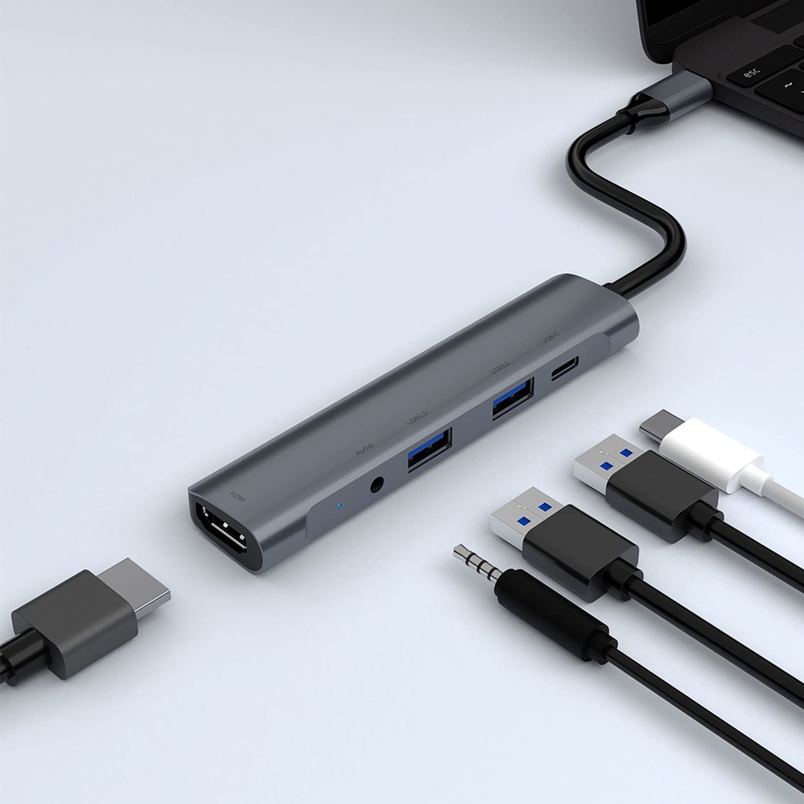 Assurez une charge rapide de votre ordinateur MacBook Pro sans sacrifier le port de type C Il te donne un port HDMI 4K à 30 Hz (parfait pour regarder tes films en ultra HD ou faire des présentations pro), deux ports USB 3.0 (transfert de données jusqu... Concentrez-vous sur la fabrication de produits de qualité., Description du produit 5 in 1 USB-C Hdmi Hub Souris Ergonomique Sans Fil Adaptateur Usb-c 5 En 1 -C 5-en-1 - Ports HDMI 4K, USB 3.0 Et Charge PD 60W, Compatible MacBook Et Steam Deck Dock USB-C Portable Hub Usb Nous offrons une garantie de 18 mois, un support produit à vie et un service client amical. Parfait pour les présentations, les films et plus encore. Une bonne qualité à prix abordable. 【Hub USB-C 5 en 1 et extension massive】 : cet adaptateur multiport de type C dispose d'une sortie vidéo HDMI de 1 x 30 Hz et d'un bloc d'alimentation USB-C de 60 W qui est chargé pour transférer des médias en quelques secondes., Ports USB 3., 0., pour un transfert de données supérieur. Sortie HDMI 4K haute définition UH5020C | Hub USB-C 5 en 1 con Puerto HDMI 4K@60Hz y Carga Rápida de Transmission haute vitesse 5 Gbps 【HDMI 4K Haute Définition】 : l'adaptateur HDMI mâle vers femelle prend en charge la vidéo avec une résolution de 4K jusqu'à 3840 x 2160 à 30 Hz, offrant une vidéo cristalline et un son de haute qualité. Le hub USB-C est parfait pour étendre votre MacBook tout en travaillant à domicile. 【Transfert de données puissant】 : le port USB-C Hub 3., 0 offre une vitesse de transfert de données allant jusqu'à 5 Gbit/s, dix fois plus rapide que le port USB 2., 0 (480 Mbps). 【Port de charge PD 60 W】: Alimentez votre ordinateur portable lorsqu'il est connecté via le port USB-C -PD.