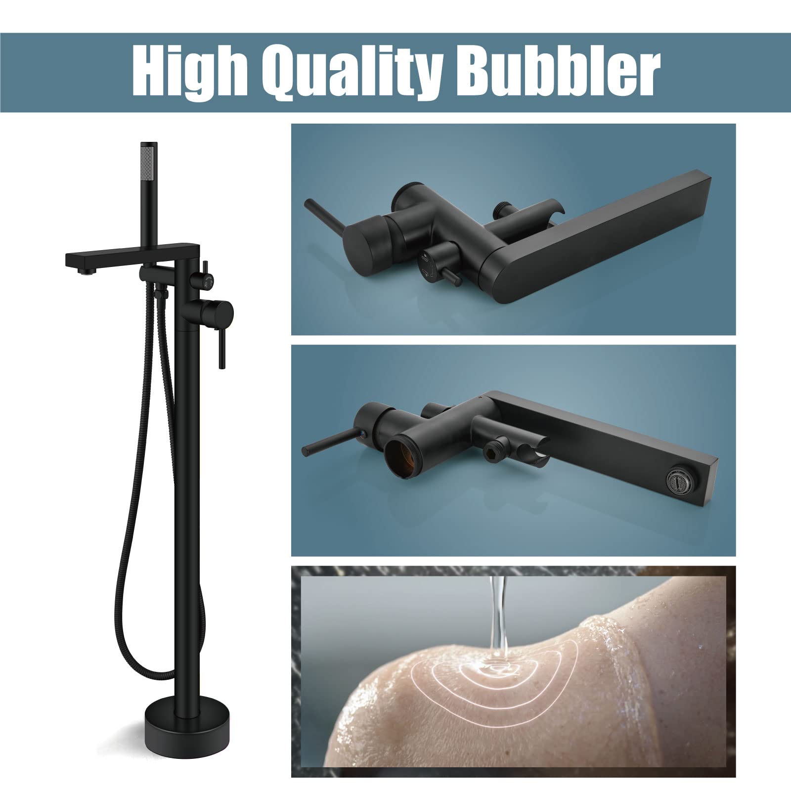 Fonctions : bec pivotant à 360 degrés, douchette à main avec tuyau de douche de 150 cm qui aidera à rincer la baignoire ou à rincer après un bain, très pratique à nettoyer Ce remplissage de baignoire est fabriqué en laiton de qualité supérieure, finition noire mate pour résister à la corrosion et à la rouille. Design fiable : le design du robinet de baignoire assure une résistance à la corrosion et au ternissement, ce qui est également adapté pour une installation au sol. ALONI ROBINET DE BAIN SUR PIED AVEC DOUCHETTE - NOIR MAT | CR6057-2MB Robinet De Bain Autoportant Arrondi Noir Mât – EKÕNO DESIGN Installation : montage au sol. Construction entièrement métallique : laiton massif, fabriqué à partir de laiton massif de haute qualité et finition noire mate en résistant à la corrosion et à la rouille pour plus de durabilité et de fiabilité Débit : max 6 GPM (bec de baignoire) ; 2,5 GPM (douche) Longueur du tuyau de douche : 150 cm. Détails : Matériau : laiton., Finition : noir mat. Contenu : corps du robinet de baignoire, tube de robinet en laiton, douche à main, tuyau froid et chaud, couvercle de base, matériel de montage et instructions d'installation (français non garanti). Aolemi Robinet de baignoire autoportant noir mat à montage au sol, cascade, haut débit avec mitigeur de douche à main, bec pivotant : : Outils et BricolageÀ propos de cet article Construction entièrement métallique : ce robinet de baignoire autonome est fabriqué en laiton massif, fabriqué à partir de laiton massif de haute qualité et d'une finition noire mate en résistant... Construction entièrement métallique : laiton massif, fabriqué à partir de laiton massif de haute qualité et finition noire en résistant à la corrosion et à la rouille pour plus de durabilité et de fiabilité Style moderne : le style simple et élégant avec des lignes et des courbes lisses donnera à votre salle de bain une mise à jour élégante et moderne et convient à tout style décoratif.