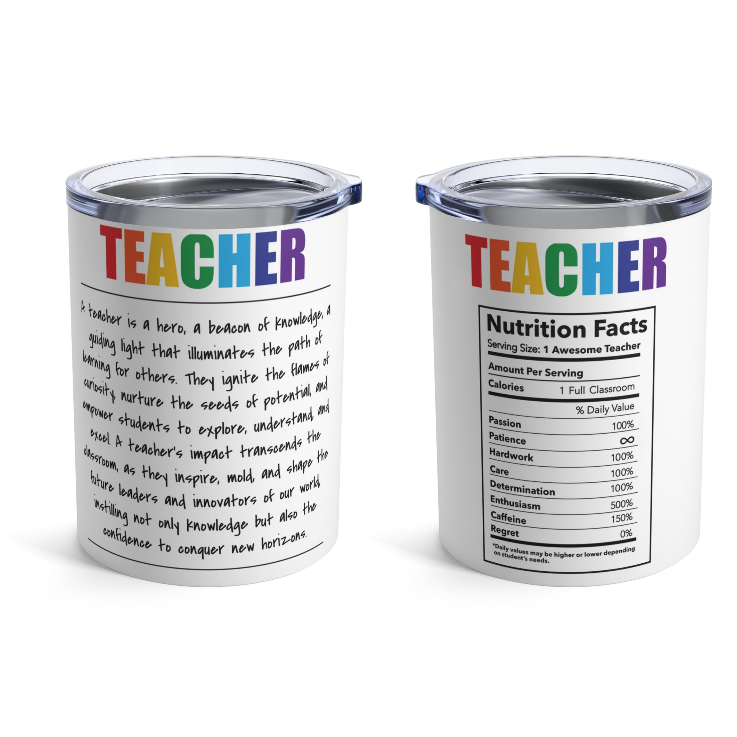 C'est un remerciement, un gage d'appréciation et un rappel de l'impact durable des enseignants. Pour les éducateurs de tous niveaux : que vous cherchiez à honorer un enseignant préscolaire dévoué, un éducateur d'école primaire nourricier, un enseignant de lycée inspirant, ou même un brillant professeur d'université, ce gobelet est un choix réfléchi qui transcende les groupes d'âge et les niveaux d'éducation. y Brouk Gobelet en verre Vintage avec couvercle et paille Ce gobelet sert de rappel constant de l'appréciation et du respect que vous avez pour votre enseignant. Avec « Teacher Nutritional Facts » et une « définition de l'enseignant » éclairante, c'est un hommage aux éducateurs qui façonnent les jeunes esprits. Choisissez notre gobelet de 300 ml, un cadeau qui célèbre les enseignants et tout ce qu'ils contribuent au monde. Au cœur du parcours de chaque élève se trouve un enseignant extraordinaire. Il en dit long sans un seul mot, symbolisant l'impact durable qu'ils ont eu sur votre vie. Ce cadeau en dit long sans avoir besoin d'un long discours. Tasse à Café En Plastique Pour Devenir Une Mascotte De Personnage... ⭐ Célébrez les contributions des enseignants : qu'il s'agisse de la semaine de reconnaissance des enseignants, de la fin de l'année scolaire ou de toute occasion spéciale, ce gobelet de 300 ml est un cadeau qui reconnaît et célèbre le travail incroyable des éducateurs. Tasse - Meilleure Enseignante Du Monde ! Personnalisable - Les Fabuleuses Créations Québécoises L'isolation à double paroi du gobelet maintient les boissons à la température parfaite, ce qui le rend idéal pour le café chaud tôt le matin et les boissons froides rafraîchissantes pendant les pauses de l'après-midi. Pour exprimer votre gratitude et votre admiration pour leur dévouement inébranlable, nous vous présentons notre gobelet de 300 ml – le cadeau ultime d'appréciation des enseignants. 🎁 Cadeau unique pour les enseignants : notre gobelet de 300 ml est le moyen ultime d'exprimer votre gratitude sincère aux enseignants qui font la différence. Qu'il s'agisse d'un enseignant préscolaire qui initie les enfants aux joies de l'apprentissage ou d'un professeur de lycée qui enflamme la curiosité intellectuelle, ce gobelet est conçu pour les enseignants de tous les niveaux d'éducation. Petit gobelet d'enseignant personnalisé de 40 oz avec anse et paille, cadeau personnalisé drôle avec prénom pour éducateur, tasse de remerciement pour la rentrée des classes - France