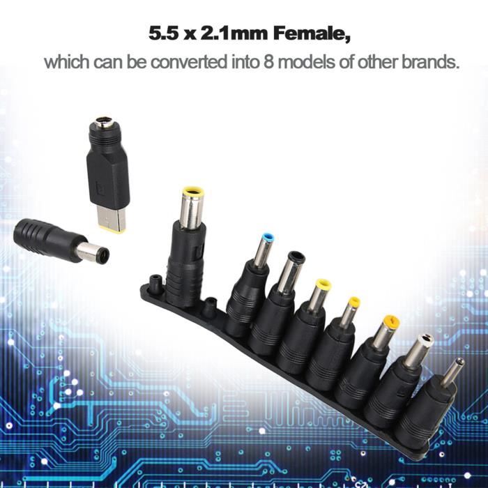 Cable Alimentation 5 5 Mm Adaptateur D'alimentation CC Pour Ordinateur Portable HP Adaptateur Alimentation 5 5 2 1 Description: Produit de qualité supérieure., Quantité : 1 pièce. Mâle : - Diamètre extérieur : 4,5 mm. Cet ensemble d'adaptateurs de prise CC est livré avec un connecteur mâle et femelle de 5,5 mm x 2,1 mm. L'adaptateur se termine par un bornier auquel les fils peuvent facilement être connectés. Cet adaptateur donne une grande liberté pour connecter un système à sa propre alimentation Adaptateur audio Jack 2.5 mm femelle / 3.5 mm mâle - Câble audio Jack... Femelle : diamètre de la broche : 2,1 mm Adaptateur coudé mâle vers femelle 4,5 x 3,0 mm Câble d'extension d'alimentation CC 15 cm pour HP (noir Mâle : diamètre extérieur : 4,5 mm DC 5,5 x 2,1 mm femelle vers 4,5 x 3,0 mm mâle pour ordinateur portable HP Ultrabook Contenu : 1 convertisseur d'alimentation CC Cet adaptateur est composé d'une part d'un connecteur Jack DC 5.5/2.1mm femelle et d'autre part d'un connecteur Jack DC 7.9/5.5mm mâle. Nom : DC 5,5 x 2,1 mm femelle vers 4,5 x 3,0 mm mâle pour ordinateur portable HP Ultrabook Femelle: Taille du trou : 5,5 mm.
