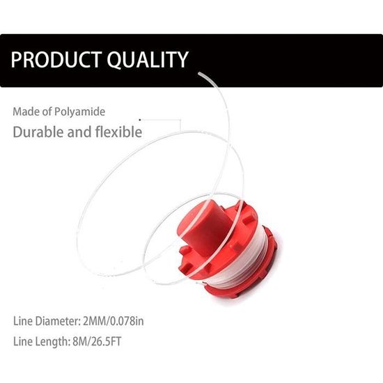 Caractéristiques : Matériau : nylon. Bobine de fil de rechange 3405096., Bobine de rechange pour débroussailleuse de 8 m de long, 2 mm de diamètre. Contenu : Bobine de fil (comme sur l'image) Lot De 4 Bobines De Fil Et De Fil De Rechange 3405096 Pour Debroussailleuse Einhell Ge Ct 3630 Ge Lm~p147767620 Bobine Fil Pour Einhell Ge-Ct 36-30 Li E Solo Agillo 36-255 Bl Agillo... Lames Coupe Bordure Einhell CDIYTOOL 3405096 Lot De 4 Bobines De Rechange Pour Fil Débroussailleuse 2mm Longueur : 8 m - Diamètre : 2 mm Bobine de fil de rechange pour débroussailleuse 3405096 Compatible avec les modèles de tondeuse Ein Hell : GE-CT 36/30 LI E SOLO, AGILLO 36/255 BL, AGILLO 18/200 Caractéristiques : Souple et flexible permettant à la ligne de s'étirer et d'amortir sur les chocs avec des surfaces dures. Excellente finition : la coupe CNC professionnelle et l'enroulement automatique sont plus sûrs et plus économiques que l'enroulement manuel, réduisent les dommages à la tondeuse et ne bloquent pas lors de la tonte. Matériau de qualité supérieure : cordon en nylon de qualité, résistant et coupe l'herbe plus rapidement. Modèle de tondeuse compatible : pour GE-CT 36/30 LI E SOLO, AGILLO 36/255 BL, AGILLO 18/200 Flexible et robuste, permettant à la ligne de s'étirer et d'amortir sur l'impact avec des surfaces dures.
