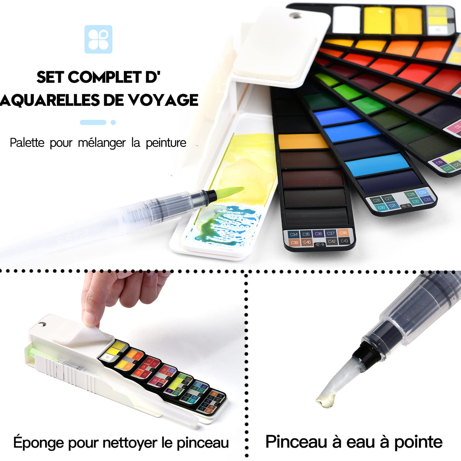 Ensemble de toile aquarelle : comprend 1 toile aquarelle, 2 pinceaux et 1 palette de couleurs. Notre planche à dessin est équipée de 2 pinceaux pour le coloriage, qui peuvent être rapidement changés et assortis en fonction de l'épaisseur des pinceaux. Il est très portable et peut être transporté, adapté pour les voyages en plein air, les activités de récréation et les trajets quotidiens ANYPAINT - Livre De Peinture Aquarelle De Poche – 👶 Parents Sereins Il peut terminer un travail en peu de temps, et les d butants peuvent facilement l'utiliser Achetez Mini palette de peinture de voyage pru00eate u00e0 l'emploi, trousse d'aquarelle portable en bois pour aquarelle, gouache, peinture acrylique pour... Il... Taille de la palette d'aquarelle : 19 x 8 x 2 cm, taille de la palette de couleurs : 13 x 13 cm. Enfants Aquarelle Livre de Peinture, Enfants Livre de Peinture à l'Eau Il peut terminer un travail en peu de temps, et les débutants peuvent facilement l'utiliser Vous pouvez également équiper vos propres pigments à placer dans la palette, qui peuvent être réutilisés Les livres de peinture aquarelle peuvent non seulement cultiver les intérêts personnels, mais également stimuler la créativité et favoriser la croissance complète des enfants.