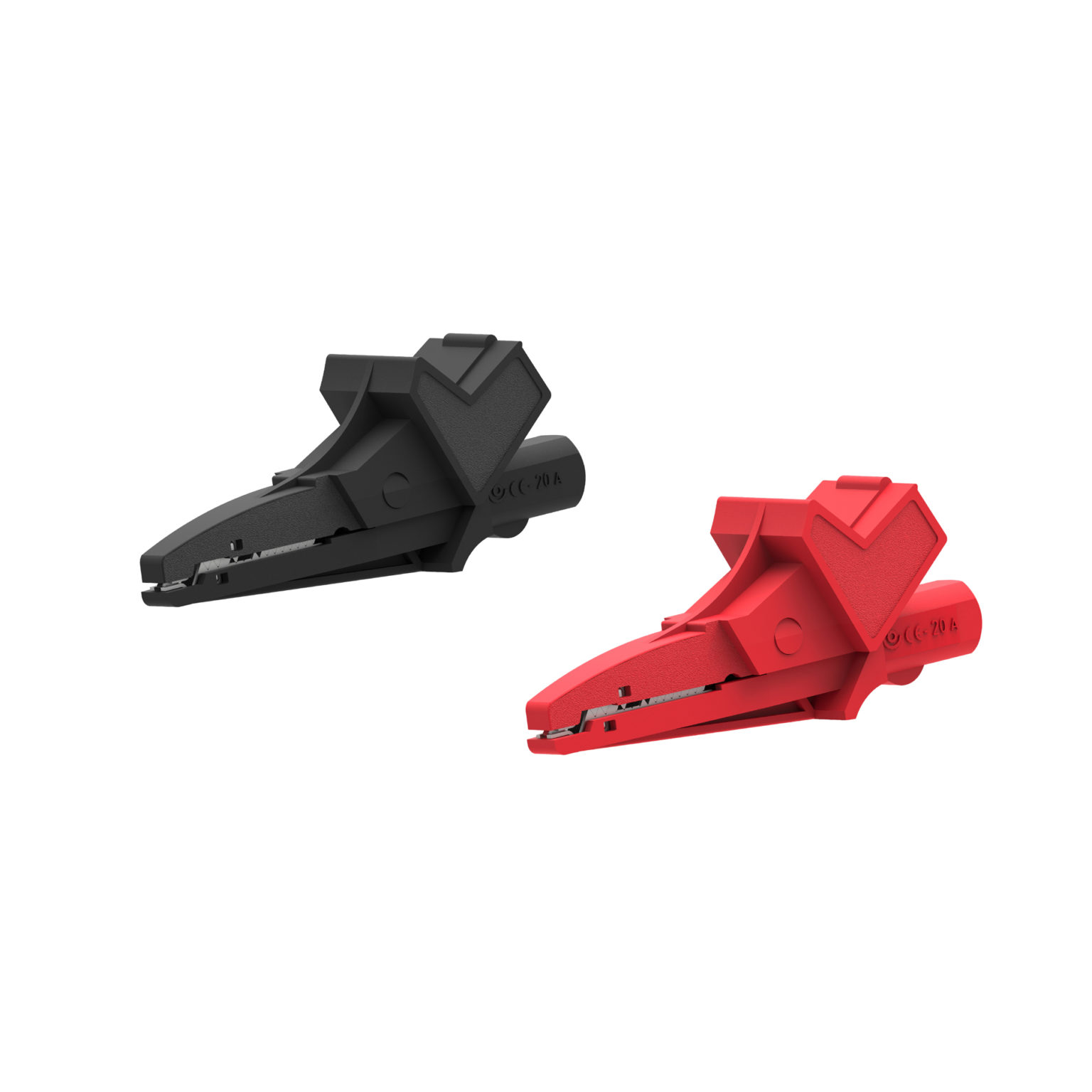 2 pinces crocodiles à bec avec manchons isolés Pour une connexion électrique rapide et provisoire Connexion par fil à visser ou par fiche banane diamètre 4mm Les deux pinces crocodiles prêtes à recevoir un cable qui pourra être soudé. Deux manchons en caoutchouc permettent de protéger la soudure et isole aussi la pince. Ils ont de deux couleurs distinctes : noir et rouge 9209-22 | Pinces crocodiles Rouge pour fiche 4 mm, 10A 30 V ac, 60 V dc... Tibelec Crocodile Tibelec 431930 Lot De 2 Pinces Crocodiles Crocodile Mr Bricolage 2 pinces crocodile longueur 27 mm avec gaine isolante couleur rouge pour electronique - Bricolage