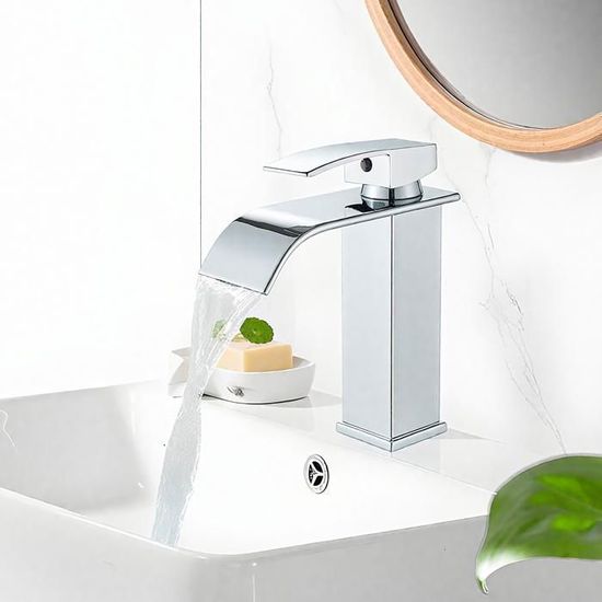 La sortie d'eau du robinet de salle de bain a une forme unique, comme une cascade, qui économise de l'eau et n'éclabousse pas, vous apportant une vision d'écoulement d'eau calme et fluide ! Nous fournissons un service après-vente complet, si vous avez des questions lors de l'installation et de l'utilisation, n'hésitez pas à nous contacter. Robinet mitigeur lavabo surélevé, chrome, Cascade Ouverture de montage internationale de 30 mm, tuyau fileté et écrou en acier inoxydable 304 de haute précision, ne rouille jamais, s'assemble en douceur, assurez-vous que le robinet ne bouge pas Mitigeur de lavabo avec tuyau d'eau G1/2 et accessoires, compatible avec divers éviers, processus d'installation facile, pas besoin d'engager un plombier, gain de temps et d'argent. Robinet Lavabo Cascade Castorama Robinet De Lavabo Monotrou Cascade, Mitigeur Salle De Bain En Laiton Robinet Cascade Castorama Les composants de haute qualité du mitigeur cascade et la technologie des disques en céramique fonctionnent sans problème. Robinet Lavabo Cascade en laiton sain standard pour eau potable, protégez votre santé, anti-empreintes digitales et taches, gardez votre robinet toujours comme neuf ! La commande à levier unique rend la commutation, le réglage du débit et de la température de l'eau très faciles et pratiques. Robinet de Lavabo - SANAG - A91 - Acier Inox - Or - Monotrou...