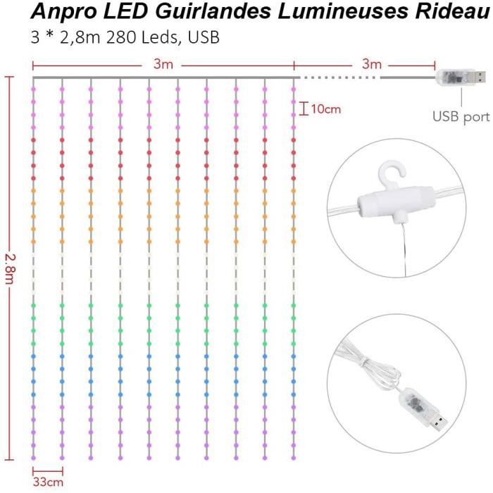 Spécifications du produit : Nom :Rideau lumineux en anneau Couleur : Blanc chaud, irisé Lumières du produit :120 lumières Tension :4,5 V Alimentation :USB Puissance : Une perle de lampe de 0,06 W Spécification :3m*0., 6m Méthode d'éclairage : Clignotement à huit modes avec télécommande Champ d'application :Convient pour la décoration intérieure et extérieure Emballage du produit : 1 * lumière de rideau en anneau Caractéristiques du produit : Dimmable : lumières de décoration de fenêtre de Noël avec luminosité réglable. Rideau Lumineux Noël, 3M 125LEDs Rideau Guirlande Lumineuse,3D... Selon le décor général, vous pouvez choisir un éclairage clair ou doux. Les ampoules LED à basse température garantissent un toucher sûr même en cas d'utilisation prolongée. ✨【8 modes d'éclairage à distance】8 modes d'éclairage au choix : 1., Changement continu, 2., Changement de vague, 3., Changement de flash rapide, 4., Changement de flash lent, 5., Changement de rêve, 6., Changement marche/arrêt, 7 ., Changement clignotant, 8., Toujours allumé, appuyez sur la minuterie, il s'éteindra automatiquement après 6 heures de mise sous tension. Fonction de synchronisation intime : activez la fonction de synchronisation, vous n'avez pas besoin d'être occupé à éteindre les lumières ou à éteindre les lumières tous les jours, et économisez de l'électricité. Rideau Lumineux Noël,Lumières Led De Noël,Guirlande ✨【Design】Il peut décorer des jardins, des murs, des clôtures, des fleurs et des arbres, des balcons, des avant-toits, des toits, des patios, etc. Parfait pour rehausser le sens de la vie et ajouter une touche d'ambiance à une fête. Utiliser moins d'énergie et réduire les coûts de fonctionnement vous permetd'économiser à long terme., Economique et durable ! Guirlande Imitation Sapin Guirlande Lumineuse De Noël Pour Fenêtre, 120 Lumières LED Guirlande Lumineuse Fenêtre Noel Noel,Guirlande Led Décoration De Fenêtre,120 LEDs Rideau Lumière 8 Modes D'éclairage à Distance,Charge USB INNNB. Voir plus d'informations. Descriptif... ✨ 【 Guirlandes lumineuses de Noël 】 Guirlandes lumineuses sur le thème de Noël avec LED blanches chaudes, avec 10 jolis pendentifs (Père Noël * 2/Renne * 2 / Arbre de Noël * 2 / Chapeau de Noël * 2 / Bonhomme de neige * 2) brillant chaud. Comparé aux lumières de Noël traditionnelles, il peut économiser 90% d'énergie.