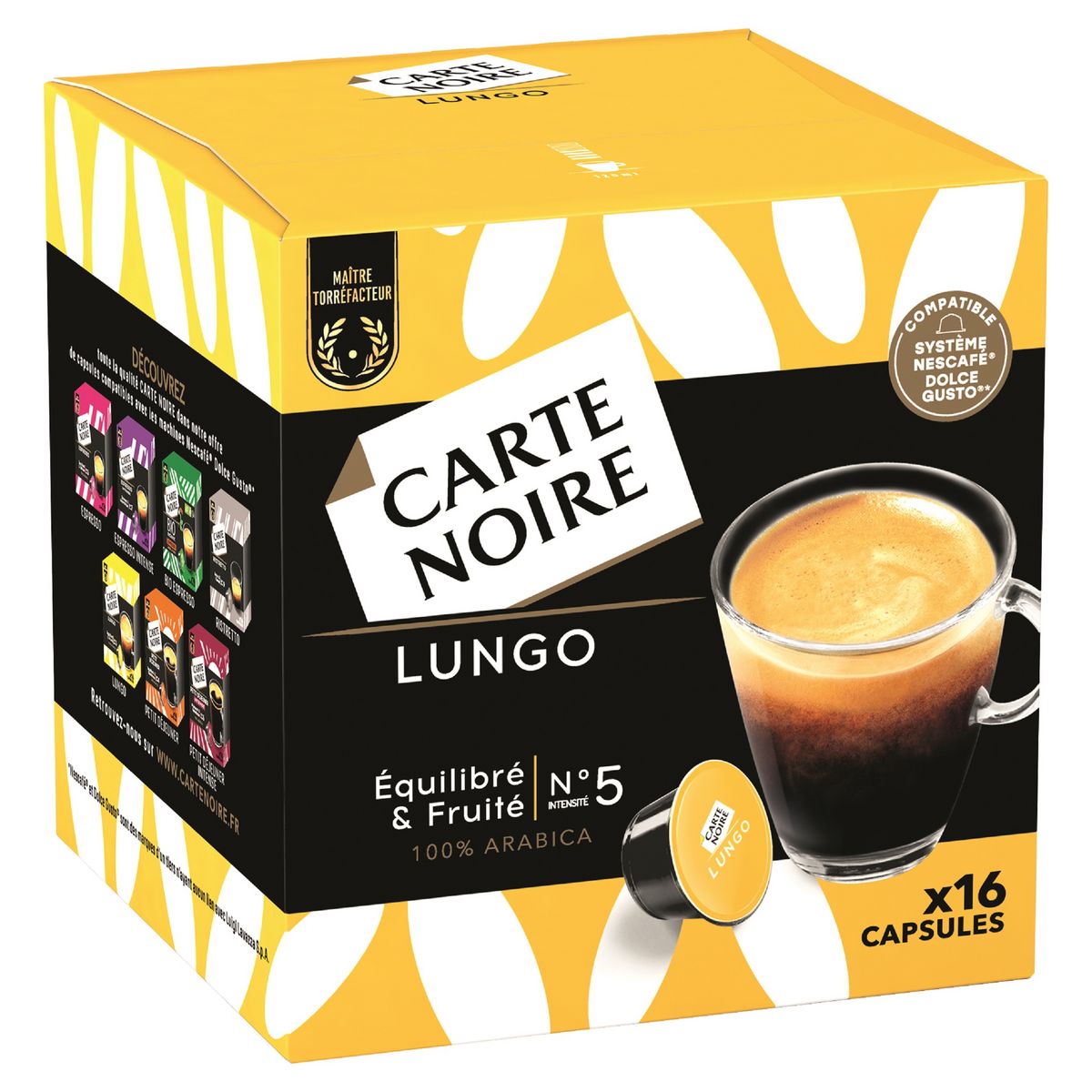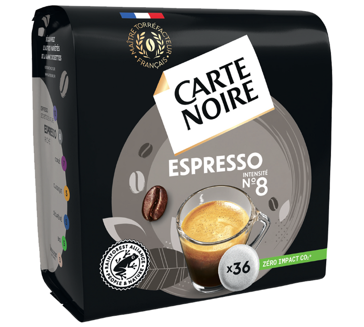 - Découvrez l'intensité et l'authenticité d'un café exceptionnel avec le CARTE NOIRE Espresso Classic N°8 Type Senséo 250G. - Idéal pour les amateurs de café fort, cette dosette compatible avec les machines à café Senséo vous offrira une expérience gustative sans égale. - Riche en saveurs et en corps, le café Espresso de CARTE NOIRE vous offrira un moment de dégustation mémorable à tout moment de la journée. Capsule Carte Noire CARTE NOIRE - Espresso Intense N°7 Café Capsules Compatible DOLCE GUSTO Senseo Machine A Cafe CARTE NOIRE Espresso Classic N°8 pour machine à dosettes et capsules, café intense en format 250g - Le Lot De 3 Expresso intensité n°8 · Notre avis. Intensité 6. Munies d'un filtre alvéolé, les dosettes Carte Noire vous offre une mousse très onctueuse pour un pur moment de... Promo Café Dosettes Espresso N°8 Carte Noire chez Géant Casino