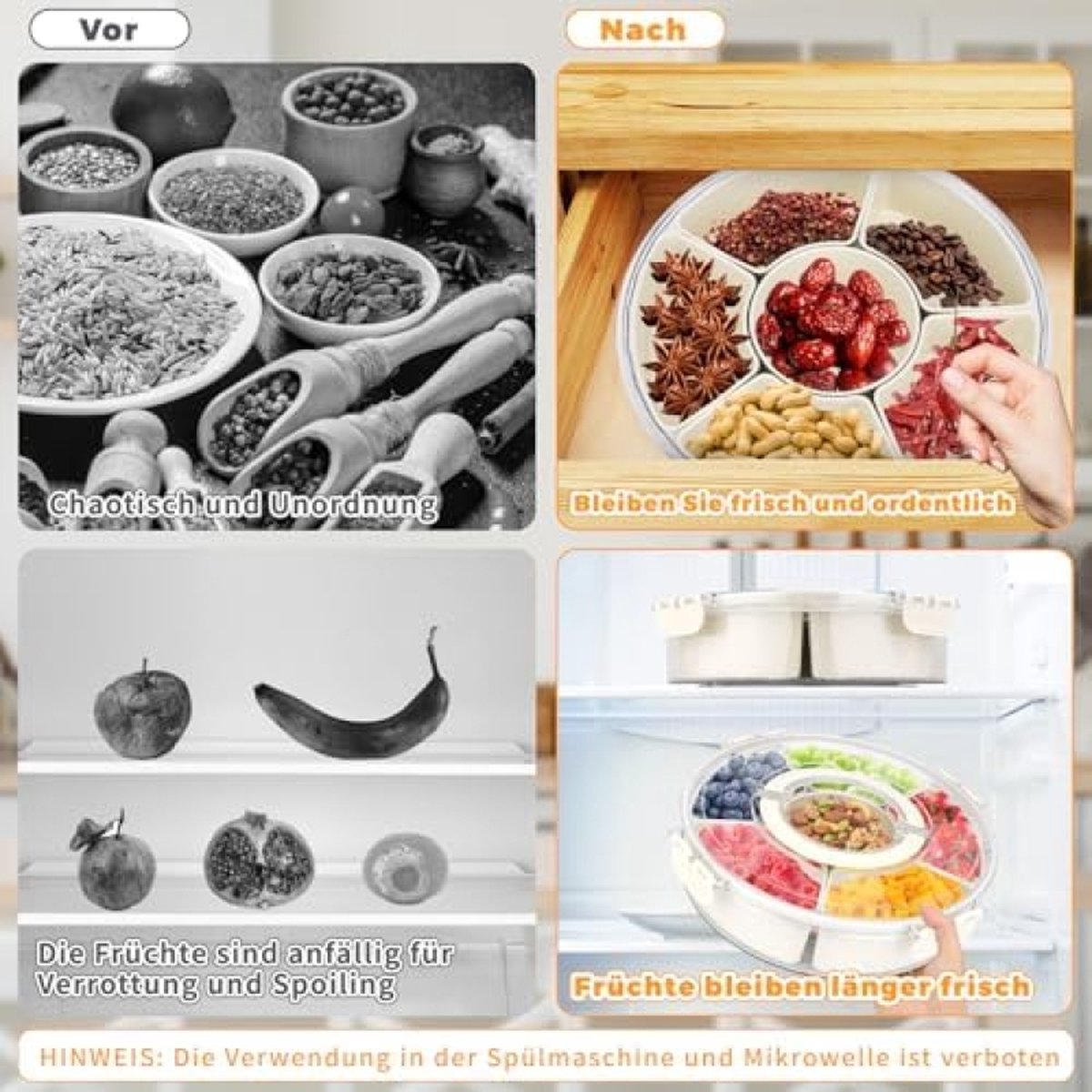 Boîte À Goûter Enfant Mb Gram Forest - Snack Box Pour Fille Et Garçon - Idéal Pour Ecole Ou Parc Informations détaillées sur le produit 1., Matériau de qualité alimentaire, non toxique et sans odeur, sûr et fiable., 2., Rangement par compartiments, facile à prendre., 3., Conception portable, facile à utiliser., 4., Spécialement conçu pour les congélateurs à basse température (-20 °C), convient à la réfrigération et à la congélation, répond à vos besoins quotidiens. Parfait pour ranger des bonbons, des biscuits, des fruits et plus encore. Facile à nettoyer et hygiénique : chaque compartiment de la boîte à goûter avec compartiments ronds est facile à retirer et à nettoyer à la main. Plateau De Service Divisé Candy Box Boîte à Bonbons Rotative Créative, Assiette à Fruits Divisée Miam Box Particulièrement durable et exempt de substances nocives - Idéal pour déguster des collations au quotidien. La boîte réutilisable réduit les déchets d'emballage et garde les aliments frais. Design rotatif innovant : notre assiette à snack avec plateau rotatif à 360° permet de tourner et de saisir sans effort. Matériau de qualité : la boîte à goûter est faite de matériaux robustes de qualité alimentaire pour un plaisir durable. Les 50 brochettes à fruits fournies les rendent idéales pour les fêtes, les pique-niques ou une utilisation quotidienne. Boîte à Goûter Ronde Compartimentée Multifonctionnelle]Cette boîte à en-cas ronde compartimentée comporte 6 compartiments amovibles pour séparer et... Spécifications : Matériau : plastique Couleur : transparent + blanc laiteux Dimensions : 26,5 x 26,5 x 9 cm Poids : 797 g Contenu de l'emballage : 1 boîte à snacks 1 sachet de 50 fourchettes à fruits