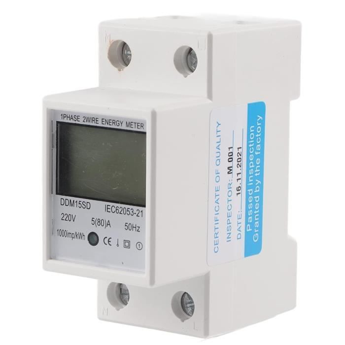 Spécification : Matériel: plastique Modèle: DDM15SD Précision: première année Tension de référence: 220V/230V 50/60Hz Courant de référence (courant . Pas de fonction de réinitialisation] Affichage numérique du rétroéclairage LCD, pas de bouton de réinitialisation, pour éviter toute manipulation humaine avec les données. Avec les caractéristiques d'une bonne fiabilité, de petite taille, de poids léger, d'une belle apparence et d'une installation facile Circuits intégrés à grande échelle et technologie SMT de précision, avec une bonne résistance aux interférences électromagnétiques et des performances stables Multifonction--compteur d'energie-Il affiche l'électricité, la tension, le courant, la fréquence et la puissance. 【Propriété isolante】Tension alternative 1min 4KV, 1., 2 / 50us 6KV. 【Pas de fonction de réinitialisation】 Affichage numérique du rétroéclairage LCD, pas de bouton de réinitialisation, pour éviter toute manipulation humaine avec les données. Signal d'impulsion d'énergie LED rouge. Couvercle d'extrémité intégré, garantissant la sécurité de l'alimentation. Circuits intégrés à grande échelle et technologie SMT de précision, avec une bonne résistance aux interférences électromagnétiques et des performances stables. 【Précision】 Adoptez la microélectronique et la technologie de traitement numérique pour mesurer l'énergie électrique, précise et fiable. Avec les caractéristiques d'une bonne fiabilité, de petite taille, de poids léger, d'une belle apparence et d'une installation facile. 5-80A DDM15SD LCD Rétro-éclairage Affichage Numérique Wattmètre DDS015M Watt-heure mètre affichage numérique monophasé compteur d'énergie électrique... 5-80A AC 230V 50Hz Kwh Mètre Affichage LCD Numérique Compteur D'énergie Monophasé Wattmètre 35Mm