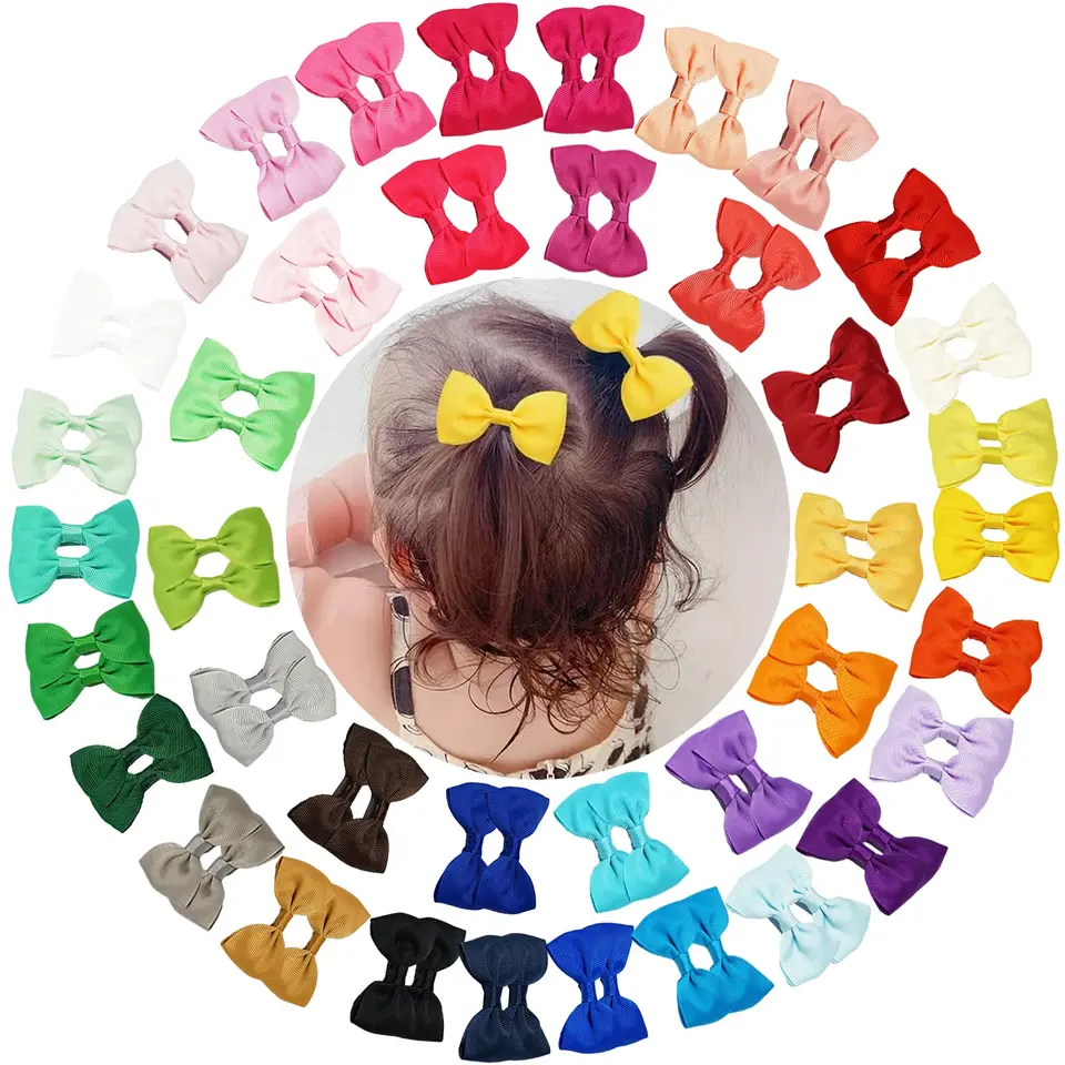 Ensemble De 6 Pièces/3 Paires De Petits Nœuds Pour Cheveux Pour Filles, Pinces à Ruban Gros-grain, Couleurs Scolaires [rouge