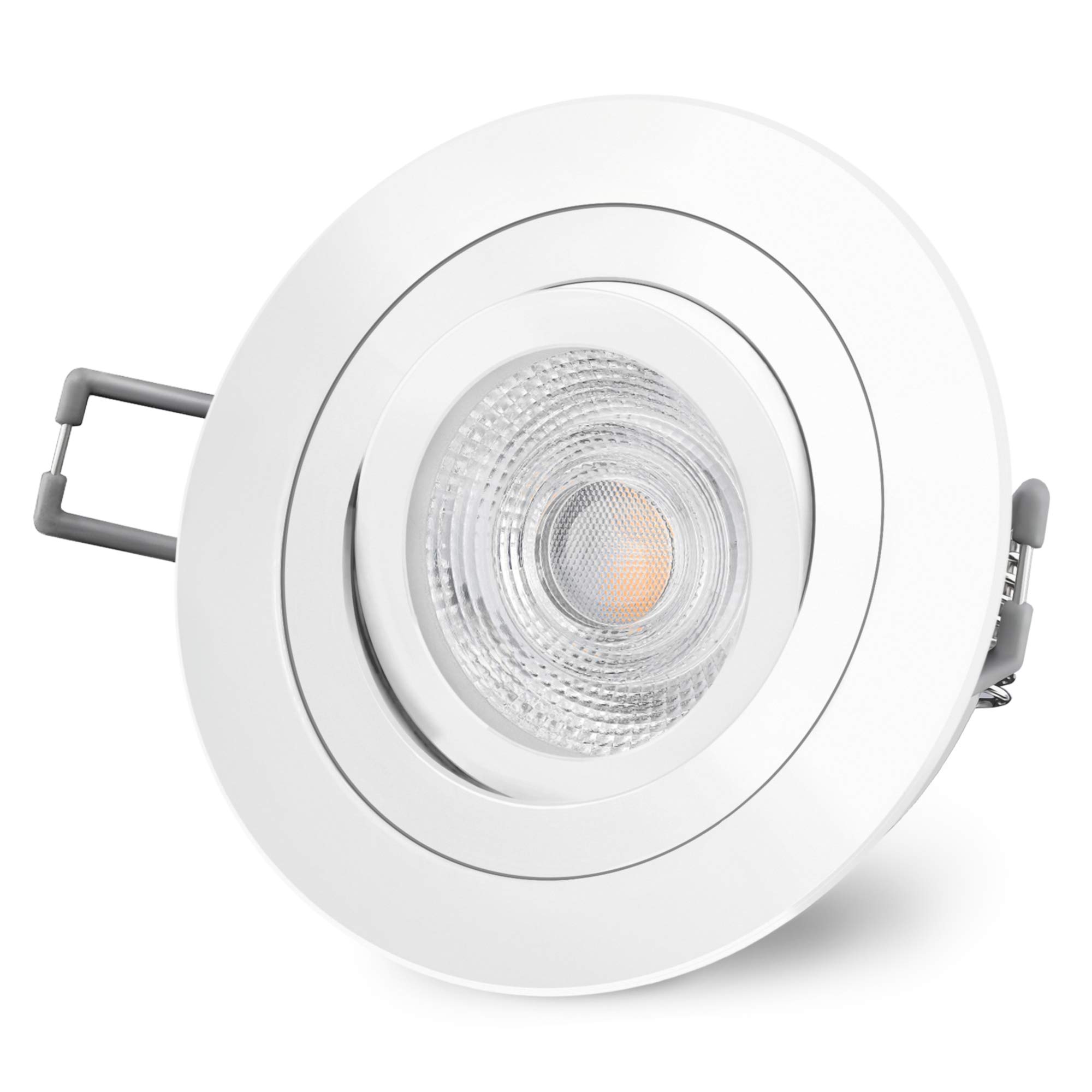 Puissance (pont) : 5 W Consommation pondérée : 5 kWh/1000 h. Éclairage LED GU10 distinctif en aluminium noir pour l'éclairage intérieur · Faisceau lumineux réglable grâce à la fonction pivotante – aucun transformateur... Alimentation électrique : filaire Tension : 230 V CA 50/60 Hz. Spot LED Encastrable Rond 12W - UGR18 - Coupe 70mm - Blanc Matériau : aluminium Traitement de surface : acier brossé. Elle est livrée avec un culot GU10 pour le raccordement à 230 V. Puissance de l'ampoule : 15 W. Étant donné que le plafonnier peut être connecté directement au réseau électrique, aucun transformateur n'est nécessaire. Dimensions extérieures : Ø 93 mm. Avec ampoule LED GU10 remplaçable de 5 W et couleur de lumière blanc chaud pour une atmosphère chaleureuse Electrique Classe de protection : II Angle d'éclairage : 110°. Lot de 6 spots encastrables SSC-LUXon RF-2 LED encastrables Spot de plafond LED GU10 en aluminium brossé pour le salon, le couloir ou le bureau Les pinces de fixation et l'ampoule remplaçable des spots carrés assurent un montage et un entretien rapides XimstF Decoro Spot LED encastrable orientable rond (chromé brillant... Valeur comparative : environ Halogène 50 W. Profondeur d'encastrement totale : 70 mm. Faisceau orientable et aspect laiteux de l'ampoule GU10 fournie – grâce à 230 V, aucun transformateur n'est nécessaire Diamètre du trou : 75 mm - Dimensions extérieures : Ø 93 mm - Profondeur d'encastrement avec ampoule et douille : environ 70 mm