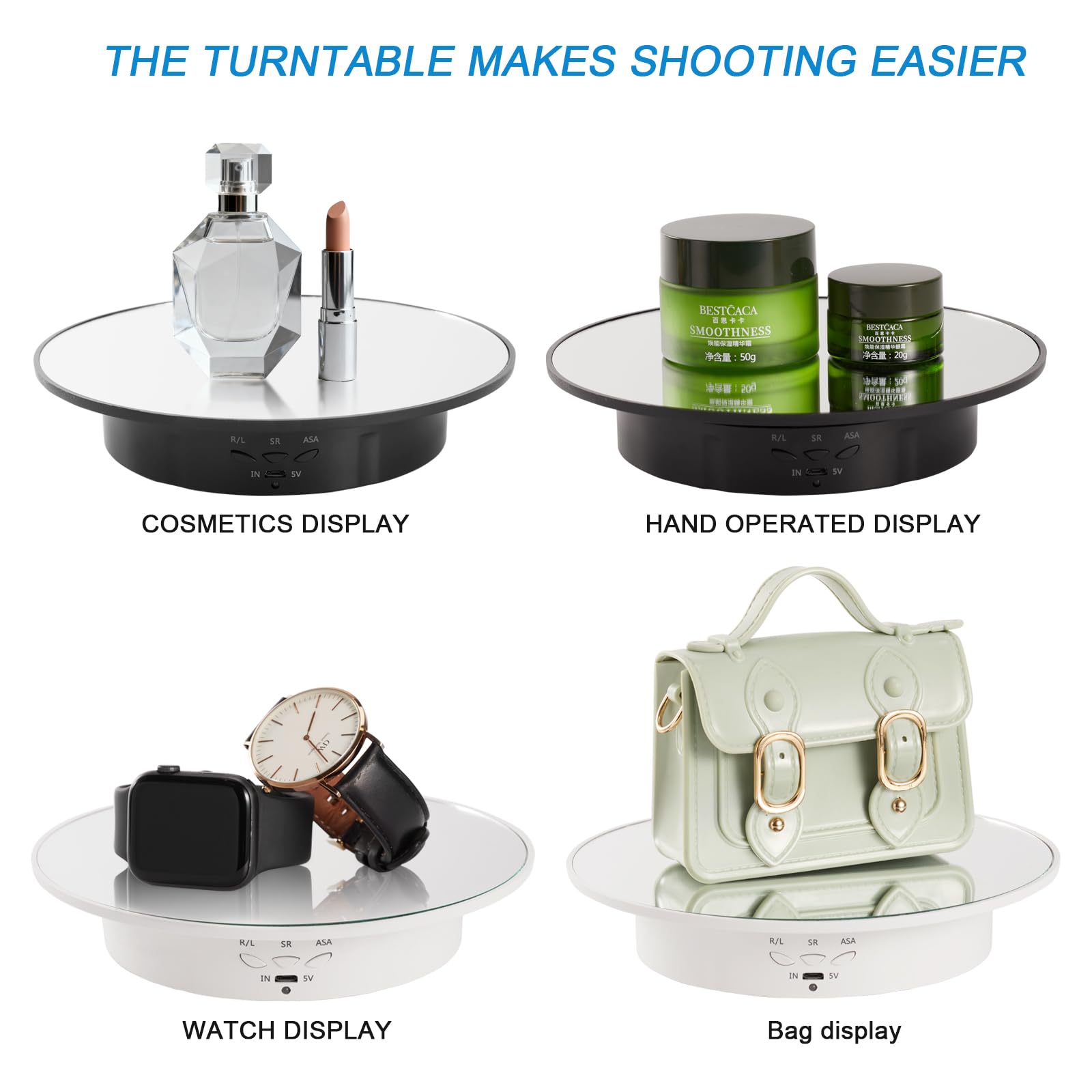 Présentoir rotatif motorisé avec port de charge USB, pour bijoux, produits de photographie, modèle 3D, gâteau, miroir Tbest Plateau tournant pour présentoir rotatif Présentoir rotatif Convient pour exposer des bijoux, des objets de collection, des jouets, des gâteaux, des mannequins, des produits numériques. Largement utilisé dans les magasins de détail, les supermarchés, les expositions ou à des fins publicitaires Plateau Tournant électrique JAYEGT Motorisé, Charge De 14,6 Cm/10 Kg, Plateau Tournant électronique à 360 Degrés Pour Produits Photographiques, Spectacles, Bijoux, Montres, Modèles 3D, Gâteaux (noir/bouton De Présentoir Rotatif Qiilu présentoir rotatif motorisé Présentoir rotatif blanc muet...