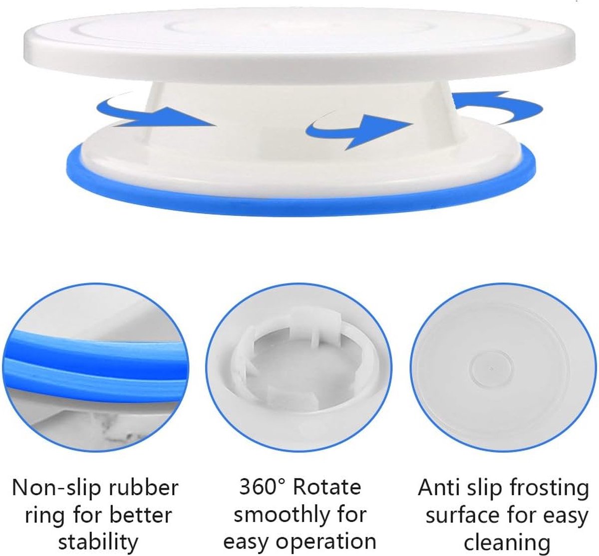 Avant la première utilisation et après chaque utilisation, essuyer avec un chiffon doux propre et humide ; sécher soigneusement Plateau tournant pour gâteau plus facile à décorer; La base antidérapante surélevée maintient le plateau tournant en place; Le plateau tournant polyvalent... Plateau tournant Wilton - Perle Dorée Plateau tournant réglable en 2 hauteurs différentes pour faciliter la décoration , Couleur : blanc , Matériau : plastique Patisserie Accessoires Professionnel DUO Base De Présentoir Stand De Gâteaux Plateau Tournant De Gâteau Presentoir A Gateau Le plateau tournant s'ajuste à 2 hauteurs différentes pour faciliter la décoration Couleur blanche Matériel: Plastique 12,75 diamètre (32,3 cm) ; Hauteur réglable de 3,45 ou 5 po (8,76 ou 12,7 cm) Avant la première et après chaque utilisation, essuyez avec un chiffon doux propre et humide ; bien sécher Aperçu Du Produit Caractéristiques Le cadre plus grand de 12, 7 cm (5 po) est idéal pour les bordures et les détails latéraux, tandis que le cadre inférieur de 8, 7 cm (3, 45 po) est la hauteur idéale pour décorer le dessus. Une base antidérapante et un anneau de préhension souple assurent que votre gâteau ne bouge pas pendant que vous le décorez.