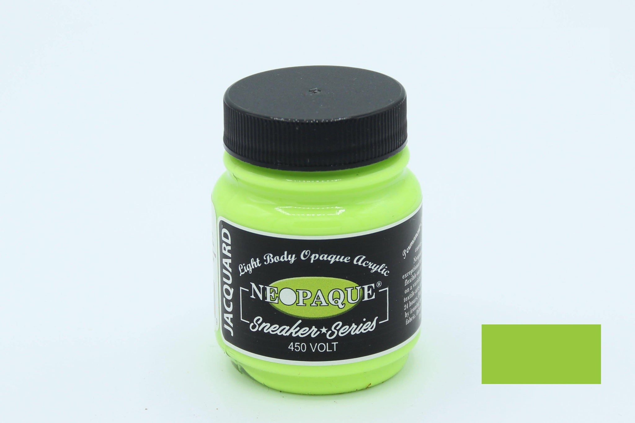 Use on all surfaces including natural and synthetic fibers, leather, wood, paper, plastic, clay and metal. Providing excellent coverage and wash fastness it works superbly on fabric, leaving it soft to the touch. Jacquard Color can also be used for marbling, painting, stamping and other techniques. Use on multiple surfaces Sneaker Series couleur aérographe par Jacquard, peinture acrylique fluide de qualité artiste Sneaker Series Airbrush Color By Jacquard, Artist-Grade Fluid Artist-grade fluid acrylic airbrush paint