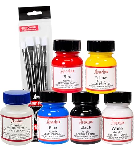 Ange en cuir couleur est idéal pour la coloration des parties spécial à chaussures, ceinture, chaussures de tennis, porte-cartes, vestes, etc. Acrylique Angelus cuir couleur est la couleur qui vous permet de les meilleurs résultats. Avec elle, vous obtenez des couleurs et elle est à décorer fantastique, coloration ou pour éditer des bords de produits en cuir lisse et vinyle Bien agiter avant utilisation. Angelus Peinture Peinture Acrylique Pour Cuir Angelus - Peinture Pour Tissus En Cuir - Base Acrylique Angelus France Catalogue Couleur en cuir pour cuir lisse , Peinture acrylique Convient pour le cuir, le biothane, la toile, le denim, le faux cuir, le nylon, le bois et bien plus encore. · Imperméable et résistant aux rayures · Flacon de 29... Angelus France – Peinture cuir pour chaussure et custom de Cuir Couleur de la marque Angelus , Couleur au choix , Contenu : 29,5 ml La couleur en cuir est fabriqué à base d'eau et peut donc être nettoyé facilement.