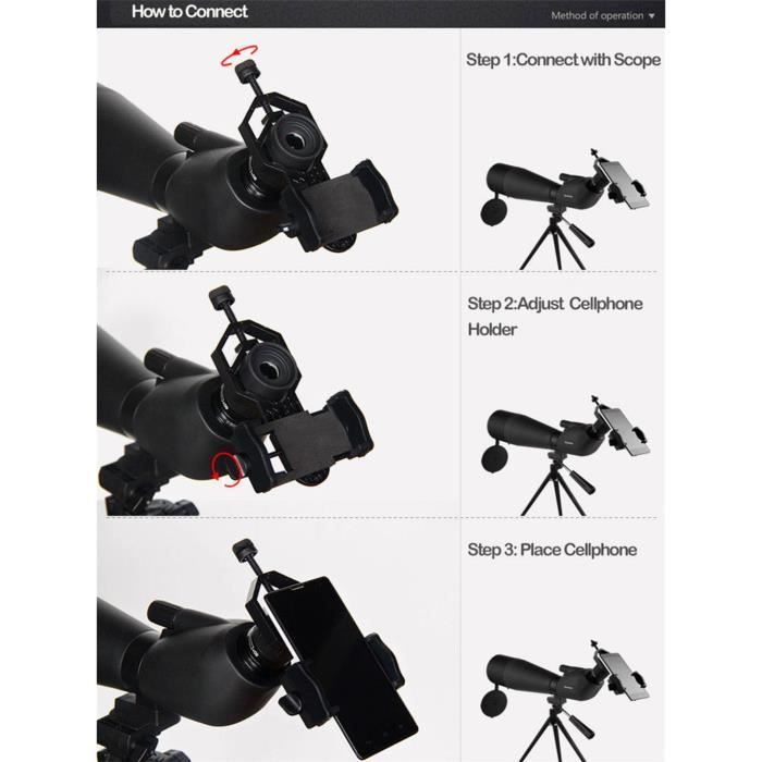 Utilisation : Clip de support de téléphone Montrer plus [Large gamme d'applications] - L'adaptateur téléphonique convient aux oculaires de 28mm-47 mm de diamètre extérieur et peut être monté sur des oculaires un jumelles, longues-vues, télescopes astronomiques, monoculaire et microscope. [Adapté à la plupart des smartphones]- Smartphone capturer clip mount support téléphone portable universel avec une large plage de... Adaptateur Smartphone Telescope Adaptateur Universel De Téléphone Portable, Montag... – Grandado Celestron NexYZ 3-Axis Universal Smartphone Adapter Adaptateur Universel de Support de téléphone pour télescope, Jumelles Accessoires de photographie de téléphone : convient pour les télescopes, monoculaires... adaptateur smartphone telescope,Adaptateur Smartphone Telescope,Support Grâce à sa pince réglable et à ses entretoises, le support universel est compatible avec tous les smartphones et instruments d'optiques courants. La taille du clip peut être ajustée pour s'adapter à différents types de télescopes Taille du produit : 13*7,5*2 cm (maximum), largeur 5,5 cm-9 cm réglable Convient pour: téléphone de largeur 5,5 cm à 9 cm Support smartphone universel pour oculaires de la marque Callstel Pour télescopes, microscopes, jumelles, monoculaire, etc.