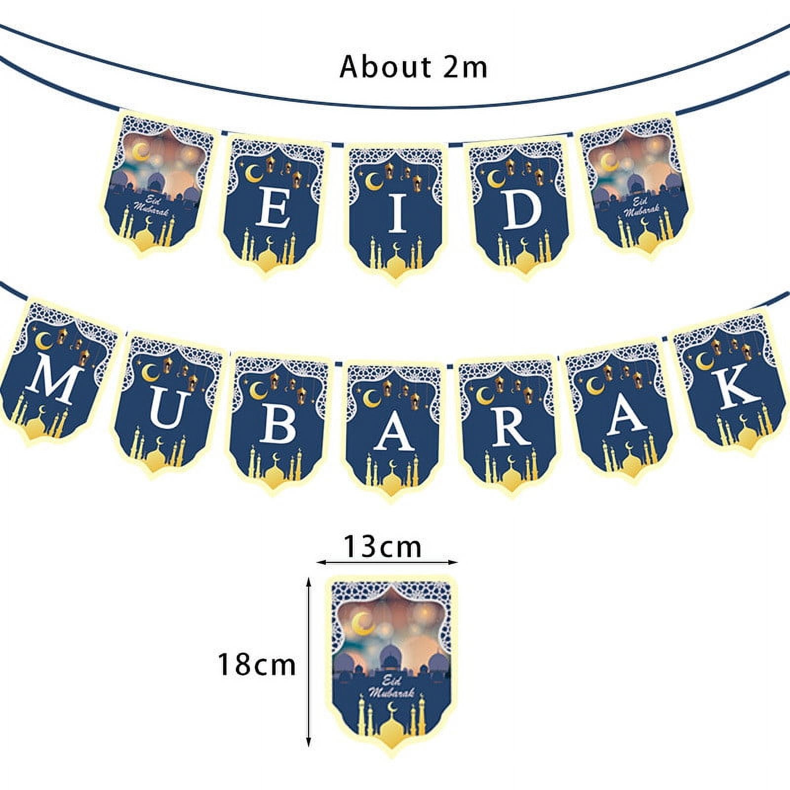 Islamic Lanterns Banner for Ramadan Kareem Eid Mubarak Ai Generated for Ils peuvent être utilisés plusieurs fois sans toucher l'eau. Couleur : or et bleu foncé, très approprié pour les décorations du Ramadan à la maison. Forfait comprenant : 1 pack de bannière Eid Mubarak + 2 pack de guirlandes d'étoiles de lune pailletées d'or Eid Mubarak TUPARKA Banner Ramadan Decorations, Moon Stars Déco Aid Taille : la taille de chaque drapeau de la bannière est : 18 cm * 13 cm / 7 * 5, la bannière entière mesure environ 2 m/6,5 pieds. Ensemble de décoration parfait : contient une bannière du Ramadan, des guirlandes d'étoiles de lune, un seul paquet peut répondre à vos besoins de décoration de base ! La longueur de chaque guirlande de lune étoilée est de 3,5 m/11,4 pieds Ces décorations dorées du ramadan peuvent rendre l'Aïd plus vivant. Applications: idéal pour la décoration du Ramadan à la maison, la décoration de l'Aïd moubarak, les décorations de la fête de l'Aïd à la maison. Islamic Lanterns Banner for Ramadan Kareem Eid Mubarak Ai Generated for Muslim Islamic Festival... La longueur de chaque guirlande d'étoiles et de lune est de 3,5 m/11,4 ft.