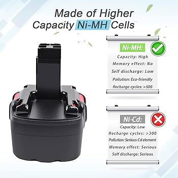 Spécifications Techniques: Type de Batterie: Ni-MH Tension de la Batterie: 14., 4V Capacité de la Batterie: 3500mAh Compatible avec Bosch Part Number: BAT038 BAT040 BAT041 BAT140 BAT159 2607335263 2607335264 2607335275 2607335276 2607335385 2607335418 2607335431 2607335432 2607335465 2607335521 2607335528 2607335533 2607335534 2607335557 2607335677 2607335678 2607335685 2607335686 2607335694 2607335711 Remplacer les numéros de pièce suivants Bosch 14., 4v: 13614, 13614-2G, 15614, 1661, 1661K 22614, 23614, 32614, 32614-2G, 33614 33614-2G, 3454, 3454-01, 3454SB, 34614 35614, 3660K, 3660CK, 52314, 53514 AHS 41 Accu Cordless HedgeCutters, AHS52 Accu, ART 26 GDR 14., 4V, GDS 14., 4V, GLI 14., 4V, GHO 14., 4V, GHO 14., 4VH, GWS 14., 4V, GWS 14., 4V/3B, GWS 14., 4VH GSB 14., 4 VE-2, GSB 14., 4VE-2B, GSR 14., 4V, GSR 14., 4 VE-2, GSR 14., 4 VPE-2, GSR 14., 4V-2B, GST 14., 4V PAG 14., 4V, PDR 14., 4 V/N, PKS 14., 4V, PSB 14., 4V, PSR 14., 4, PSR 14., 4-2, PSR 14., 4VE-2(/B), PSR1440, PSR1440/B, PST 14., 4V Garantie: Avec 30 jours de remboursement, nous nous engageons à vous fournir les meilleurs produits et services., Emballage: 2 x 14., 4V Batterie de remplacement Batterie 18v Bosch Tecmana 14,4V 4800mAh Batterie Pour Bosch 2607335275 2607335276 2607335533 2607335534 2607335465 2607335678 2607335711 BAT038 BAT040 BAT041 BAT140 BAT159 Batterie Bosch 3500mAh haute capacité peut fournir beaucoup plus de puissance et beaucoup plus de temps de fonctionnement dans un plein chargé. Type de Batterie: Ni-MH, Tension: 14.4V, Capacité: 3500mAh /3.5Ah. Compatible avec 14.4V Bosch BAT038 BAT040 BAT041 BAT159 13614 13614-2G 15614 1661 1661K... Batteries Lithium-ion,14,4 V,Pour Bosch,Capacité 2500mah,Remplace Bat038,Bat040 FindTheDeal : découvrez sans effort les offres de shopping sur FindTheDeal. Dans tous les cas les batteries Ni-MH ont une durée de vie de 3 à 5ans suivant l'usage donc ça me permet de toujours utiliser mes 2 perceuses visseuses avant de passer à des visseuses avec batteries lithium Réussite du test de surcharge, de décharge, de court-circuit, de haute température, d'humidité élevée et de surchauffe interne,all of these lengthen Batterie lifeParfaitement adaptée à la configuration interne des outils électriques, fonctionnant aussi bien que la batterie d'origine avec CE, FCC, RoHS certifié. Ni-MH Technology - Fabriqué par des cellules de batterie de haute qualité, écologique, efficace, stable et supportable,ne pollue pas l'environnement.