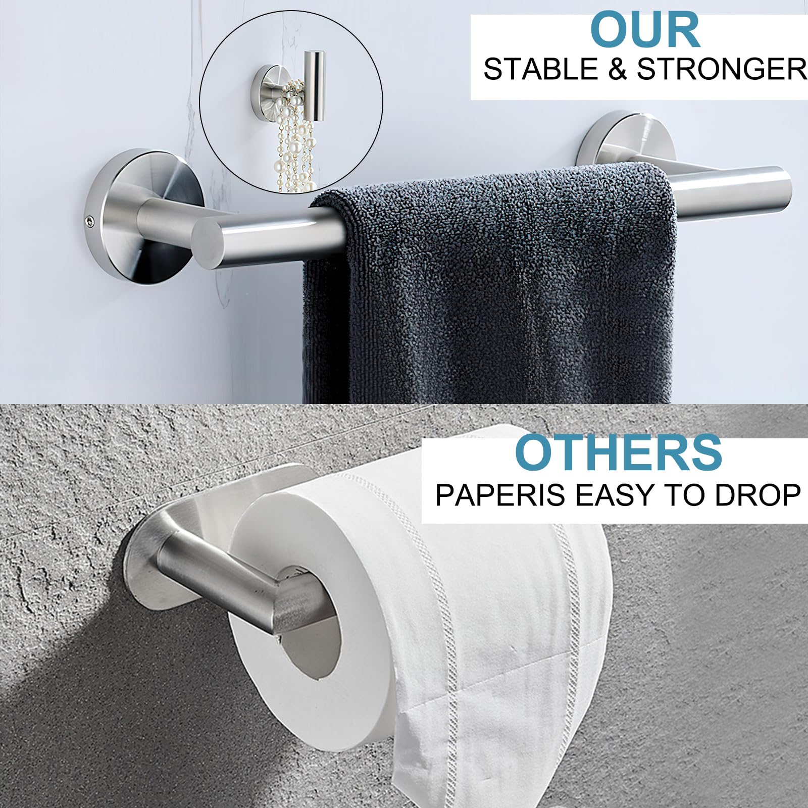 Convient à la plupart des rouleaux de papier toilette, même les méga rouleaux. Facile à remplacer : la barre rotative pour serviettes en papier sans ressort et le design pivotant à double poteau permet de changer le rouleau rapidement et facilement. Design pivotant à deux montants : le design pivotant à double poteau pourrait empêcher le rouleau de tomber, même dans un camping-car qui secoue violemment. Porte-papier hygiénique Palisades nickel brossé Porte Papier Toilette Noir Dérouleur Papier Toilette Mural Acier... RARXTR Porte-papier Toilette Blanc SUS304 En Acier Inoxydable à Double Poteau Pivotant Pour Rouleau De Papier Toilette Mural Pour Salle De Bain Commerciale RV Finition Laiton Brossé Facile à installer : facile à installer, aucun assemblage nécessaire, livré avec un kit de matériel pour le montage mural.