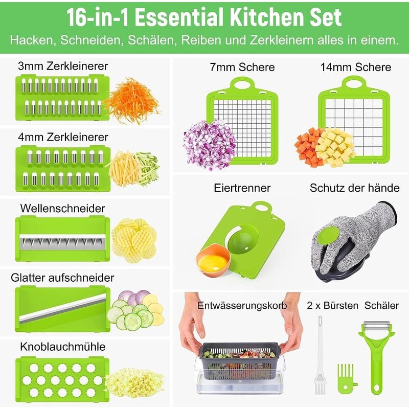 Matériaux : polypropylène, acier inoxydable., Poids approximatif : 148 g. Mandoline Trancheuse Réglable 18 Types de Trancheuse à Légumes Appareil 3-en-1 facilitant la préparation de tous les ingrédients de base Machine à Chips De Légumes Trancheuse De Légumes Mandoline Antirouille Facile à nettoyer : accrochez-le au mur ou placez-le dans les armoires et tiroirs pour sécher, facile à nettoyer au lave-vaisselle, soyez prudent lors du nettoyage. Matériau de haute qualité : notre trancheuse à légumes et aliments dispose de lames tranchantes et robustes en acier inoxydable pour une coupe facile et rapide... Dimensions : environ 10,8 x 27,5 cm., Couleur : vert. Trou de suspension : le hachoir à légumes est plus facile à ranger et dispose d'un trou de suspension pour économiser de l'espace et faciliter la vie. Design ergonomique : la poignée ergonomique est fermement prise en main pour empêcher le moulin de glisser, moins de pression et plus sûr à utiliser. Achetez VEVOR Mandoline Cuisine Hachoir à Légumes Coupe Légumes Tout-en-un avec 8 Lames en Acier Inoxydable et Récipient, Râpe à Fromage, Coupe Oignons et Pommes de Terre, Gadgets de Cuisine Hachage Rapide au prix le plus bas, livraison en 2 jours, retour sous 30 jours.