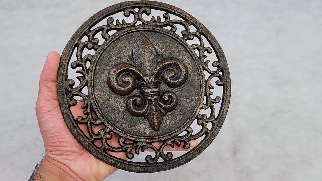 Compact mais puissant ajout à votre arsenal de cuisine : ce dessous de plat rectangulaire en fonte offre suffisamment d'espace pour les casseroles et poêles chaudes tout en conservant une taille facile à ranger ou à afficher. Combinant style et utilité pratique, le dessous de plat rectangulaire en fonte améliore vos aventures culinaires. Il peut être utilisé comme décoration murale pour plus de sophistication dans la cuisine ou la salle à manger. Sa construction robuste promet des années de service fiable, quelle que soit la chaleur, assurant que vos efforts de cuisine sont sans stress. Il s'agit d'un produit de cuisine très utile, il peut être utilisé avec des casseroles chaudes, des théières, des poêles à frire ou tout autre ustensile de cuisine. Découvrez le mélange parfait de construction classique avec un confort moderne, élevant à la fois votre potentiel culinaire et d'hôte. Son charme vintage et ses détails élégants en font un cadeau parfait pour toute pendaison de crémaillère ou pour tous ceux qui aiment les motifs de fleurs de lys. Il est livré en lot de 2 et a un beau design complexe en finition marron antique. Il empêche sans effort les marques de brûlures et les dommages causés par la chaleur, assurant que vos comptoirs et tables restent une pièce maîtresse dans votre maison. Dessous de plat Fleur de Lis, lot de 2 en 100 % fonte. Fabriqué en 100 % fonte, ce dessous de plat robuste et durable offre une surface fiable pour placer des casseroles, poêles et plats chauds. Sa construction durable garantit qu'il reste un incontournable dans votre cuisine pour les années à venir. Cadeau parfait pour une pendaison de crémaillère ou pour tous ceux qui aiment les motifs de fleurs de lys Idéal pour les amateurs de fleurs de lys, jolie pièce décorative, mesure 16,3 x 22,1 cm, hauteur 2 cm, livré avec du caoutchouc sur le fond qui l'aide à rester en place, pèse 0,8 kg. Lulu Decor, Lot De 2 Dessous De Plat Ovales En Forme De Fleur De Lys 100 % Fonte, Pour Plats Chauds Ou Casseroles, Beau Design Complexe, Idéal Pour La Protection De Table Ensemble dessous de plat et sous-verres | Moemoea Il offre non seulement une protection à votre table de cuisine, mais met également en valeur l'artisanat unique synonyme d'accessoires de cuisine de qualité. La facilité reste à portée de main car vous atteignez à la fois l'excellence culinaire et l'entretien optimal du plan de travail grâce à une praticité et une élégance raffinées. Améliorez votre décoration de cuisine : avec un design élégant fleur de lys, ce dessous de plat rectangulaire ajoute une touche sophistiquée à n'importe quelle cuisine ou salle à manger. Protégez vos surfaces en toute simplicité : ce dessous de plat en fonte est conçu pour résister aux casseroles et poêles les plus chaudes tout en préservant l'aspect impeccable de votre table de cuisine. Transformez votre cuisine aujourd'hui avec cet accessoire indispensable qui allie fonctionnalité et élégance de manière harmonieuse. Dessous de plat ovales - France Conçu dans un esprit d'élégance et de fonctionnalité, ce dessous de plat en fonte protège non seulement vos surfaces contre les dommages causés par la chaleur, mais ajoute également une touche de sophistication avec son design complexe Fleur de lys. LOT DE 2 dessous de plats en fonte à rénover vintage de ILSA en Italie... De plus, le dessous de plat peut également être utilisé comme décoration murale, ajoutant une touche de sophistication à votre cuisine ou salle à manger. Le dessous de plat Fleur de Lis est un accessoire de cuisine élégant qui combine forme et fonctionnalité. Parfait pour un usage quotidien et des occasions spéciales, le design rectangulaire du dessous de plat s'adapte à différents types d'ustensiles de cuisine, d'un four hollandais en fonte à une plaque chauffante ou une poêle électrique. Dessous de plat ovale Fleur de Lis fabriqué en 100 % fonte de Lulu Decor. Conçu pour supporter la chaleur des casseroles et poêles chaudes tout en complétant parfaitement votre décoration de cuisine, ce dessous de plat est idéal pour une utilisation avec votre poêle en fonte préférée ou poêle en fonte lodge. Profitez de son savoir-faire robuste, que ce soit pour manipuler une plaque en fonte ou une casserole chaude. Que vous l'utilisiez pour servir vos invités ou simplement comme une œuvre d'art accrocheuse, le dessous de plat Fleur de Lis ne manquera pas d'impressionner.