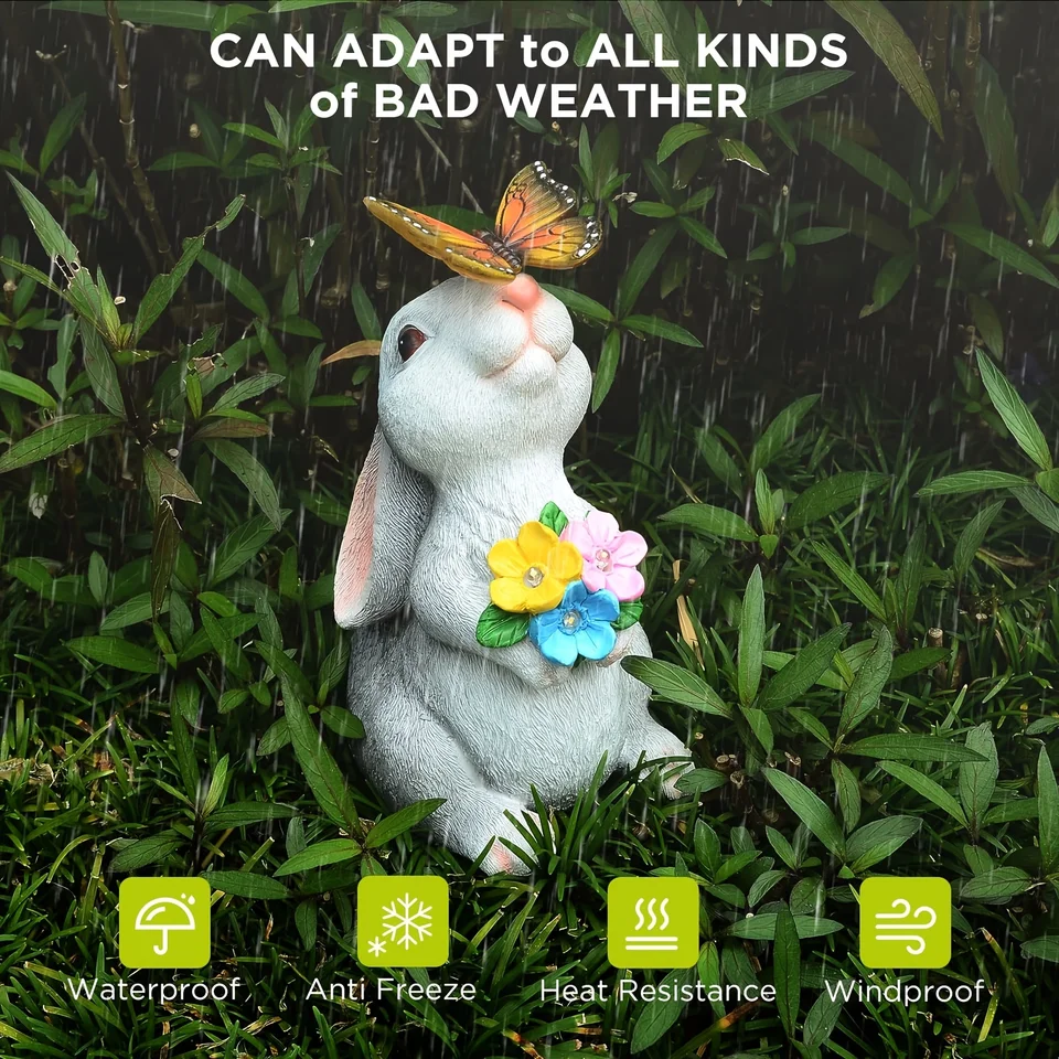 Matériau imperméable et de qualité supérieure : cette décoration de Pâques d'extérieur est fabriquée en résine durable et résistante aux intempéries. Fonctionnalités : Les lampes solaires respectueuses de l'environnement peuvent éclairer n'importe quel espace extérieur. Statue De Lapin Solaire SALALIS Lapins Solaires De Statues De Jardin Statues De Jardin Solaires Lapins Avec Papillons Lanterne Solaire Exterieur Énergie renouvelable et propre, produite par l'électricité qui est convertie à partir de l'énergie solaire pendant la journée. Choix de cadeau unique : cette figurine de jardin lapin est un choix parfait comme cadeau de pendaison de crémaillère, cadeau d'anniversaire, cadeau d'anniversaire ou même comme cadeau de fiançailles pour la famille et les amis. Statue de lapin solaire avec lumière LED, décor de jardin, papillon La belle apparence peut non seulement ajouter de la couleur à vos plantes, mais aussi embellir votre maison. Idéal pour la cour, le jardin, la pelouse, les fêtes en plein air ou tout autre endroit que vous aimez la décoration solaire. - Cette décoration en résine avec un design de lampe solaire pour illuminer vos soirées, ajouter une ambiance chaleureuse statue de lapin solaire Décoration de jardin : la statue solaire de lapin est parfaite pour décorer votre balcon, terrasse, cour, pelouse ou n'importe où dans votre jardin. Son aspect vif et beau donne au jardin une atmosphère intéressante et artistique et constitue un choix unique pour la décoration de jardin. Le panneau solaire se recharge pendant les heures du soleil, s'allume automatiquement au crépuscule et s'éteint au lever du soleil. Figurines Lapin en Résine Ornements de Jardin de Lapin Lapins Chic Décoration de Pâques,Résine... Le paquet contient : le lot de lapins de Pâques contient 6 lapins carottes, le motif est très mignon et exquis. Chaque statue est soigneusement fabriquée pour garantir que son expression est vivante et réaliste. 【Fonctionne à l'énergie solaire】 : cette statue de lapin d'extérieur à énergie solaire est équipée d'un panneau solaire.